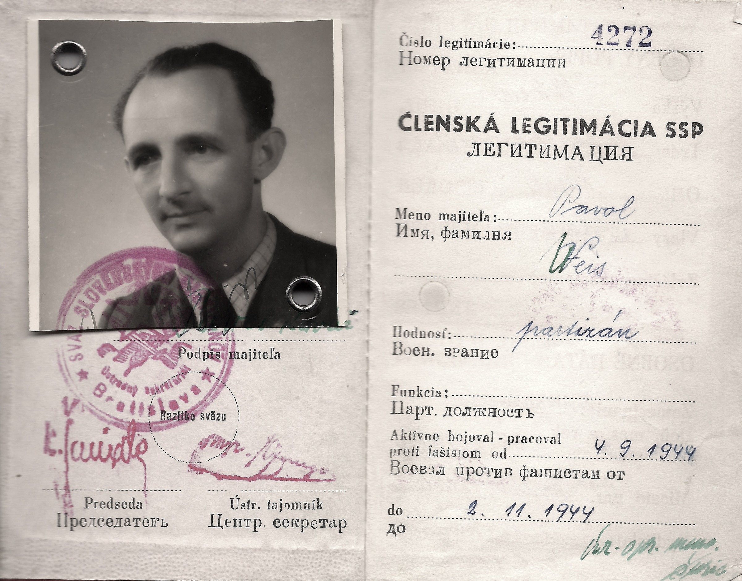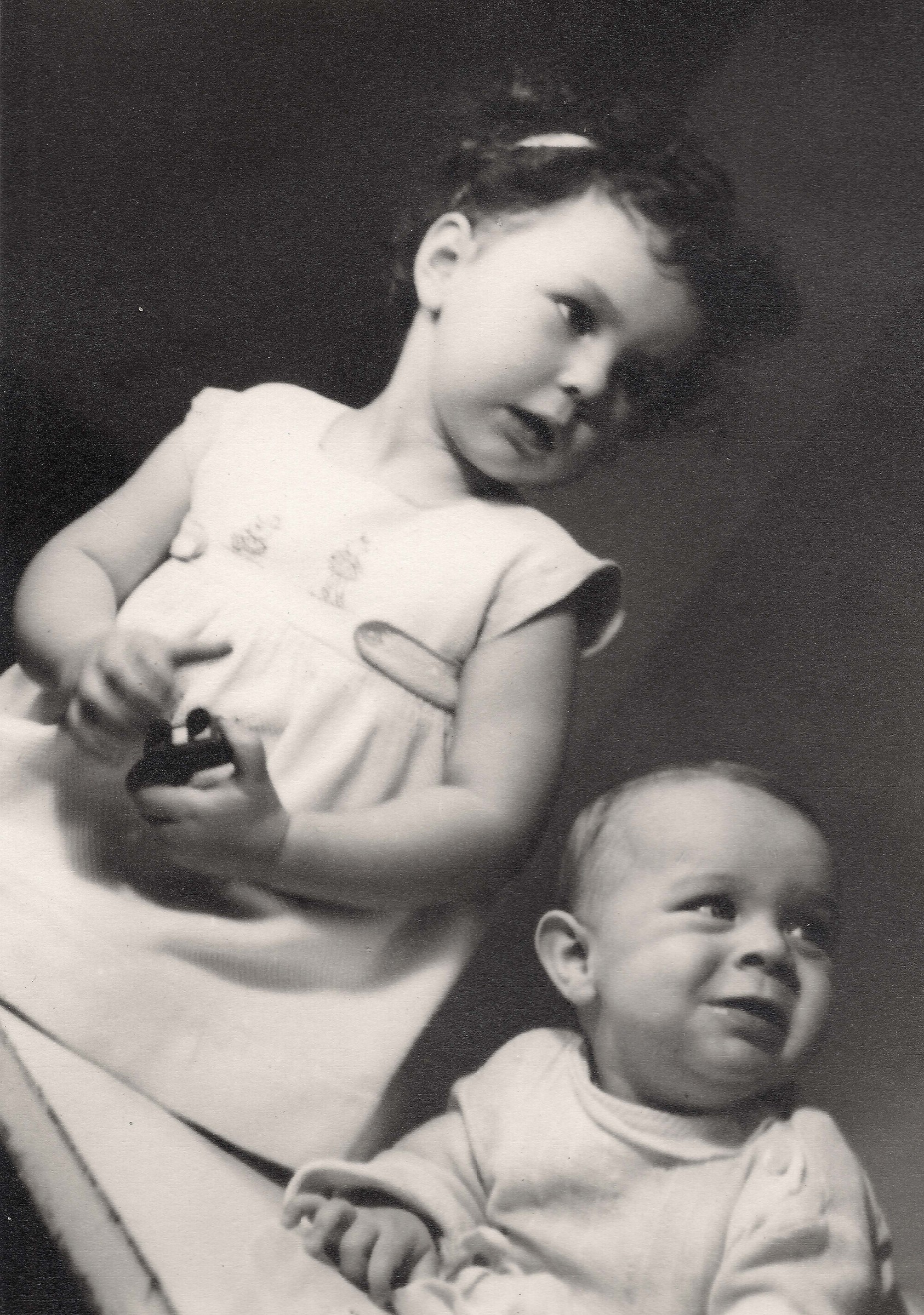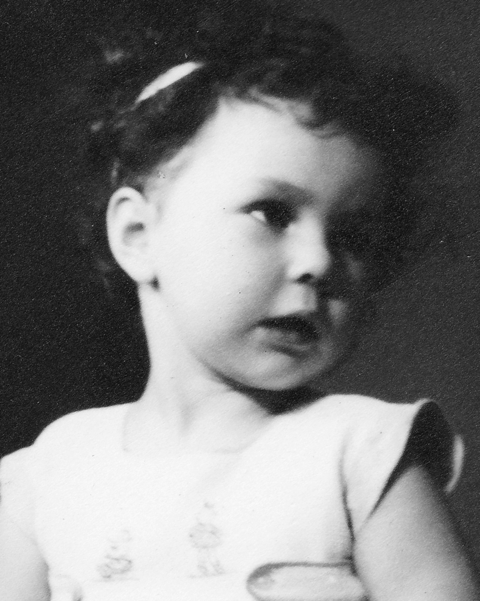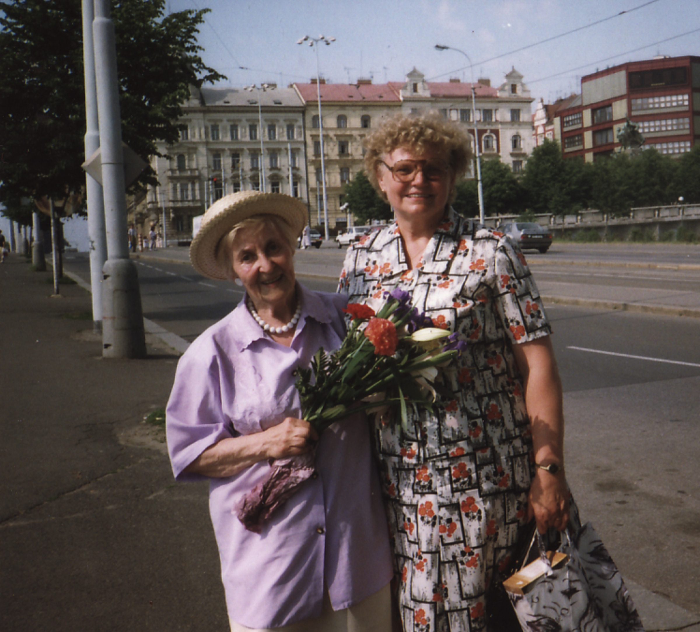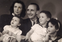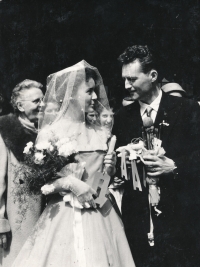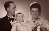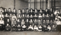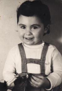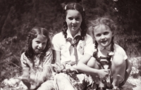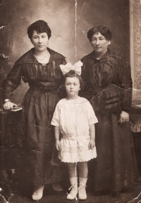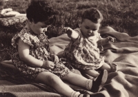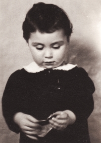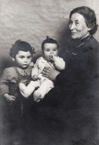 „No a my jsme od nich dostali vši. Tak mě ostříhali a bratra ostříhali dohola. A mně pak, předtím jsem měla takový světlejší vlasy, a mně narostly úplně černý, hustý, kudrnatý vlasy. Taková koule, která se ani nedala rozčesat. (Matka pamětnice: Tak byla černá, kudrnatá holčička židovská, krásná.) Tak abych se vrátila k tomu, jak nám ostříhali vlasy a my jsme pak zas byli někde jinde, a to já už nevím kde, bydleli jsme v nějakém sklepě v nějaké obci, na území Slovenského státu. A já jsem zůstala s bratříčkem sama doma a měli jsme nakázáno nikam nechodit, ale já jsem chtěla ven. Tak bylo po dešti a já jsem tam byla a hrála si na ulici s tou vodou a s blátem. A najednou se u mě někdo zastavil, v takových holínkách a zřejmě mluvili slovensky, ne německy, to bych jim asi nerozuměla, ale říkali, no to je ale krásná holčička, ta je hezká. Oni si říkali: Co tu dělá to židovský dítě? A potom jako, to je hezká holčička. A kdepak máš maminku? No ty jsi hezká. Vzali mě za ruku a já jsem furt je neviděla, já jsem viděla jen ty boty. Ty holinky. A já jsem je do toho sklepa k nám zavedla, do toho místa bydlení zavedla. Maminka se za chvilku vrátila a vrátil se i tatínek a oni chtěli doklady. No, tak naši jim ukázali doklady a oni je přesto vzali i s dětma, s náma, s Petrem a se mnou. A vzali do nějaký tý úřadovny, kde ten, a to já nevim, jestli to byli Němci, ale spíš to byli fašouni, ty hlinkovci, tak chtěli znova ty doklady a říkali: Jak to, že máte židovský dítě? Vy jste Židi. (Matka pamětnice: A já jsem klekla na kolena, že budu katolická, začla jsem se modlit a donutila jsem všecky, aby se taky modlili katolicky.) A tatínek říkal: Jak to Židi, no dovolte! A oni: No vždyť se podívejte na tu holku, to je typický židovský dítě. A můj brácha byl modrookej a měl úplně blonďatý vlasy. (Matka pamětnice: On se (manžel) postavil a řekl: Snads to neměla s nějakým Židem?) No a maminka, divadlo tam dělali, no, a jako postavil mýho bráchu na stůl tatínek a říkal: Vždyť se na to podívejte, to je typický árijský dítě. A oni jako mlčeli, ale naštěstí - můj brácha a otec byli obřezaný jako Židi, to se u nás dělá osmej den po narození, tak jako na to se nedívali, ale nevěřili nám a museli jsme si sbalit a mám dojem, že jsme toho moc neměli, jako nějak zavazadel už, jak jsme putovali, tak to ubývalo, a dali nám eskorta, šel s náma takovej chlápek v takový nějaký čepici, vysoký, a ten nás dovedl k vlaku a dostali jsme příkaz, že máme jet do Kremničky, a v Kremničce, teď už je to všeobecně známo, shromažďovali Židy a vždycky, když měli určitej počet, tak je postavili k plotu a postříleli, takhle zavraždili i mojí babičku Julii Pauncovou Riedlovou, manželku toho lékaře. A takovej příkaz jsme měli a museli jsme nastoupit do toho vlaku a ten četník předal ten papír někomu v tom vlaku, tam jeli nějaký německý vojáci. A jeli z fronty na dovolenou a oni byli takový rozjařený a ti nás měli, ne oni, ale zase nějaká určitá osoba, to já nemůžu vědět, kdo přesně, ale nás měl někdo předat v tý Kremničce zase k dalšímu řízení. Oni jak byli veselý, ty vojáci, tak jsme se jim líbili, tak mě vyhazovali do vzduchu.“