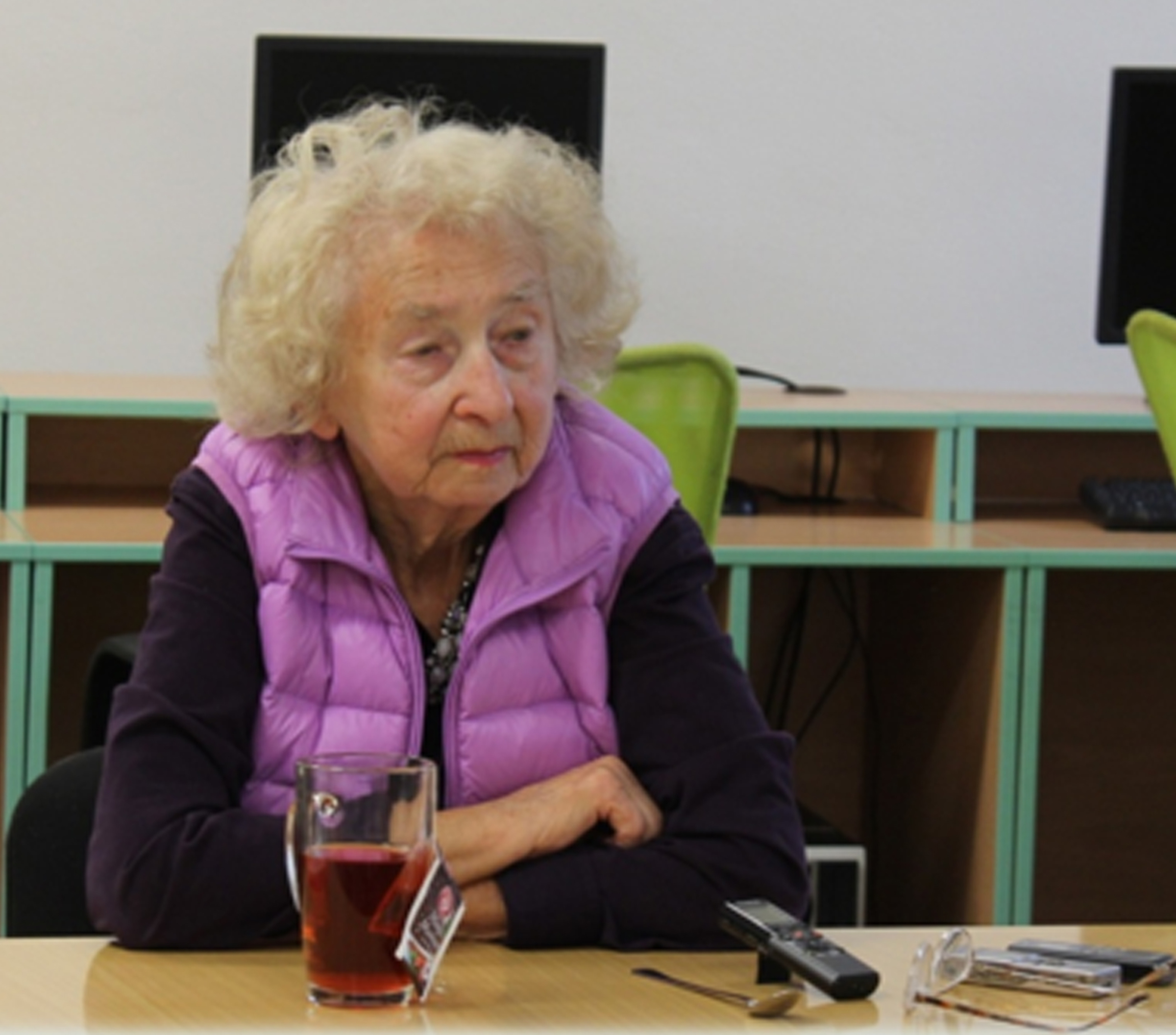 „Já jsem za války studovala na Reálném gymnáziu v Kladně. Zažili jsme také 10. červen – vypálení Lidic. Lidické ženy a děti byly ubytovány v našem gymnáziu a my jsme přes týden nechodili do školy. Nesměli jsme jít ani kolem po chodníku. To neexistovalo. A když jsme potom přišli do škol, i těm menším, natož nám už starším stěny tříd povídaly: ‚Maminko, kde jsi? Kam mě vezou? Já se tady bojím.‘ Víte, vyryly to něčím do stěn jako poslední vzkazy těch lidických žen a dětí. Nešlo se nám tam moc lehce...“