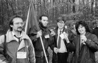 „A na hranicích už byly teda v tom určitém úseku, asi těch 200 metrů nebo 300 metrů, ty dráty odstraněné. A jak byla čára, tak tam už čekali Rakušáci, už měli uvařený kotel vína svařeného. Ale oni čekali přesně na lajně. A my, jak jsme tam stáli: ,Pojďte za náma!‘ – ,My nemůžeme! Tady je hranice!‘ – ,Pojďte, však to nic...‘ – ,Ne, ne, my budeme tady.‘ Takže oni tam stáli vyrovnaní, jeden vedle druhého v té řadě, a dodržovali zákon. No potom došli naši lidi, tak jako se nějaké ty projevy pronesly. A když skončily projevy, tak to bylo podle mě asi nejmasovější překročení hranic, co tady kdy bylo, protože asi tři tisíce lidí se vrhlo do Rakouska, začali se družit s Rakušákama. Tam byla dechovka, samozřejmě, fangle vlály, rakouská televize tam byla. Teď nevím, jestli tam byla naše televize, to ani nevím. Ale rakouská určitě, protože na ORF to dávali potom. No a lidi se rozprchli tam do těch sklepů, kde si to užívali... Bylo to teda i jako docela dojemné, protože se tam potkali i lidé, kteří se dlouho neviděli, a nemyslím zrovna jen příbuzné, ale staří dědci, kteří se v podstatě od toho osmačtyřicátého neviděli, když se tam ty dráty... nebo udělala se železná opona. Takže to bylo takové docela vypjaté, místama. Se tam objímali. Protože oni ti staří Rakušáci uměli ještě česky a naši, Poštorani, ti staří, uměli zase německy. Protože holt jako bylo to kousek od sebe a oni si to pamatovali.“