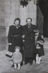 „Nedávno jsem se dozvěděla různé story, co jsem prováděla při zatýkání. Protože jsem byla zvyklá na tyto návštěvy, když přišli (estébáci – pozn. ed.), tak jsem v první řadě šla k tátově pracovní židli, tam bylo sako, cigára, začala jsem nabízet cigarety. Jeden vyměkl a dosti se mnou komunikoval. Mohla jsem s ním chodit a koukat se. Oblažila jsem ho tím, že jsem si přinesla nočník a ujišťovala jsem ho: ,Mm, koukám.‘ Nově jsem se dozvěděla: táta byl sirotek, ale přes veškerou bídu, kterou měl, tak si vždycky uchoval balíček nějakých zlatých šperků po rodičích. Máma to sbalila a poslala to po mně babičce přes dvůr.“