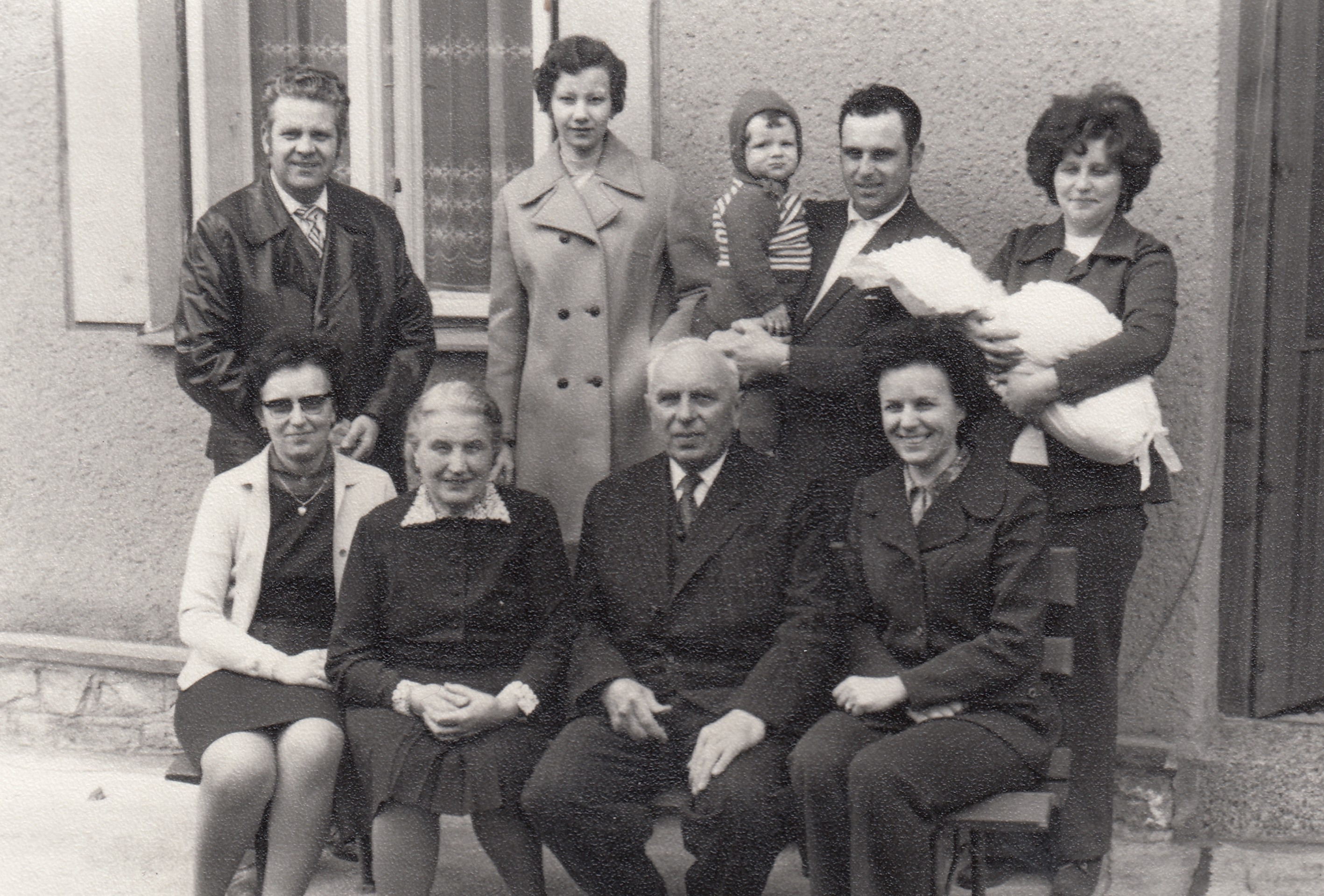 Rodinné foto. Nahoře zleva: švagr Čestmír Vach, neteř Zdeňka Vachová, synovec Jiří, bratr Jiří, švagrová Dana, neteř Hana. Dole zleva: Zdeňka, matka Ludmila, otec Adolf, sestra Dana, 2. polovina 80. let