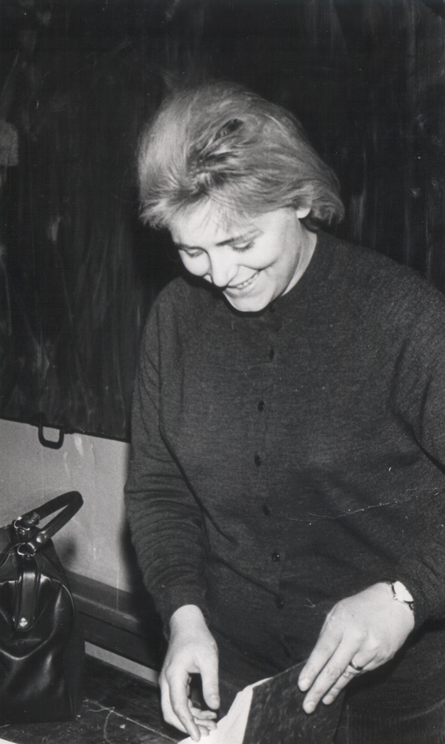 „Do čtrnácti dnů přišla ředitelka a říká: ‚Já vás nemůžu přijat. Přišel na vás z Olomouce dopis na ministerstvo školství. Já vás nemůžu přijat.‘ A to byla Jarmila Cholinská. Skvělá ženská, která v tomhle zařízení v té době podpořila sedmadvacet lidí vyloučených, vyškrtnutých a jinak politicky postižených. Byl mezi nimi například Bohuslav Balajka, možná, že ho někteří znáte, kdo jste studovali češtinu. Psal rukověti české literatury. Třetí díl měl v rukopise, který už nesměl vydat. Ten mně potom půjčil, když moje dcera maturovala. No, a já jsem se samozřejmě rozbrečela a ona říká: ‚Vidím, že budete dobře pracovat. Nechte to na mně.‘ Takže odepsala na ministerstvo: ‚Vážení soudruzi, soudružka je tady za krátkodobou mateřskou dovolenou.‘ A tu krátkodobou mateřskou dovolenou – protože ta rybka otěhotněla zase – prodloužila na osm let. A pak už jsem dostala normálně zaměstnání a na to moje místo přišel bratr, Václav Čapek. Takže naše společenskovědní oddělení: vedoucí vyškrtnutá, její zástupkyně vyškrtnutá, já, bratr vyloučený a Jindřiška Ptáčková, spisovatelka, její švagr s její sestrou emigrovali do Ženevy. Takže to bylo naše společenskovědní oddělení. Můžu vám říct, že nehážu všechny komunisty do jednoho pytle, Jarmila Cholinská, zářný vzor, že člověk, byť je komunista, může být normální.“