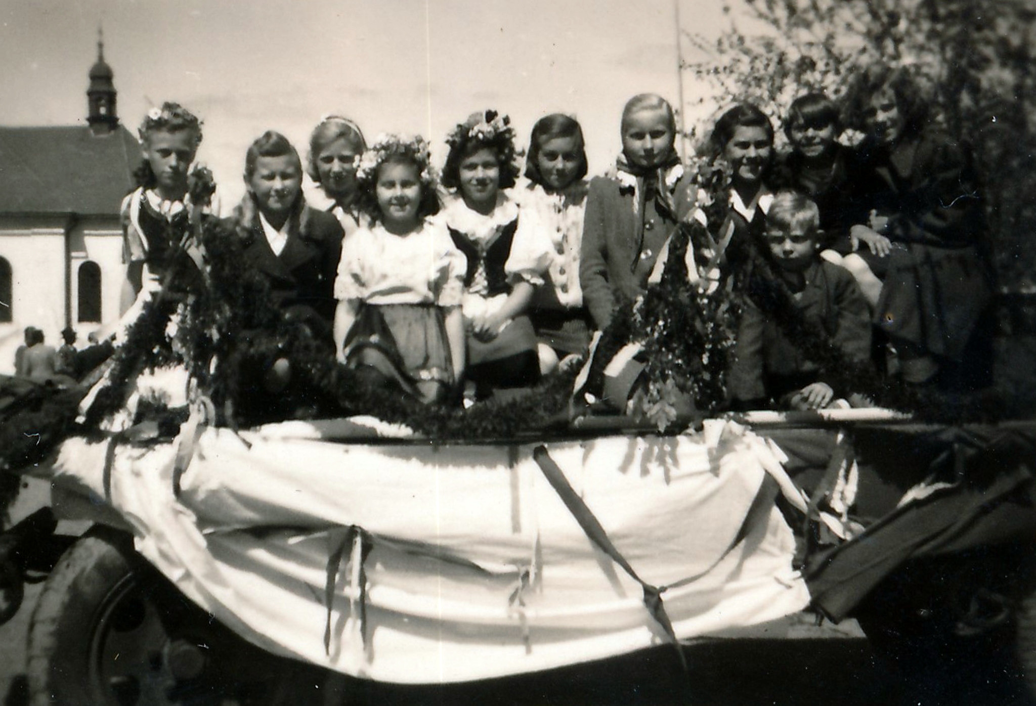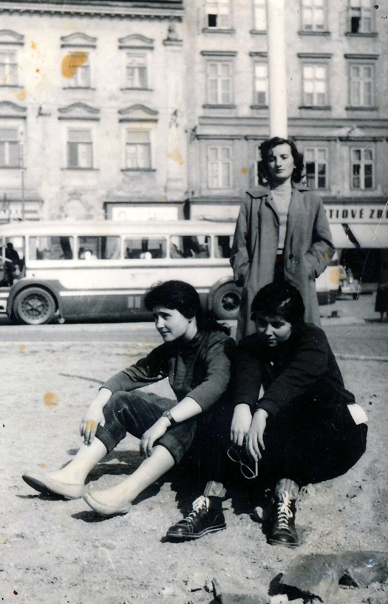„Já jsem tak vlastně poznávala mapu Prahy podle toho, co kde hořelo. A najednou mě napadlo, asi to byl taky tlak vzduchu, se otočit. A před mýma očima spadl barák. To byla časovaná puma. Spadl barák, kde bydlela moje kamarádka. Také patřila mezi ‚děti z Vyšehradu.‘ No a já jsem se rozbrečela, že Gertu to zabilo. Gertu to nezabilo, ona byla ve školce, její rodiče v práci, ale to jsem se dověděla až potom. A byl to pro mě přece jenom veliký šok. A potom jsme vyšli, když už bylo po válce, nejdřív chodili revoluční gardy. Měli na ruce cedulky RG a říkalo se jim taky rabovací gardy. A my, jak jsme byli v tom sklepě, tak tam byly takové jako dveře, ty domy byly spojené jednou cihlovou zdí. A oni chodili a prokopávali to, abychom mohli v případě potřeby projít. Protože se říkalo, že na Soudním náměstí jsou ožralí Vlasovci (pozn. zde se jedná o omyl, myšleni byli příslušníci SS) a že vydloubávají dětem oči. No, ona to nebyla tak úplně pravda. Jak se pak říkalo, Pankrác zachránili Vlasovci. Tak my jsme se takhle s dětmi ze sousedního domu navštěvovali. Přece jenom nějaká událost. Najednou tam přišel voják v naší uniformě, říkalo se, že to je česká uniforma. Měl ji doma schovanou. A říkal, už jsou tady Rusáci. A venku se ještě střílelo. Před domem jsme měli bedny s pískem, v tom suterénu byly bedny s pískem a tam jsme dostali jeden zásah. Před naším domem zastřelili nějakého člověka. A potom v našem průjezdu byly dveře, kde se maminky zastavovaly a říkaly: ‚Chudáci Weilovi, co pak s nimi asi je?‘ A já říkala: ‚Kdo to byli ti Weilovi?‘ Oni tady bydleli a museli jít do Německa pracovat. Proč? Protože to byli Židi a Židi museli jít do Německa pracovat. Byl tam nastěhovaný zubař a ten říkal, že tohle tady mají Weilovi, až se vrátí. A pořád se těšilo na Weilovy. A on se z té rodiny nikdo nevrátil.“