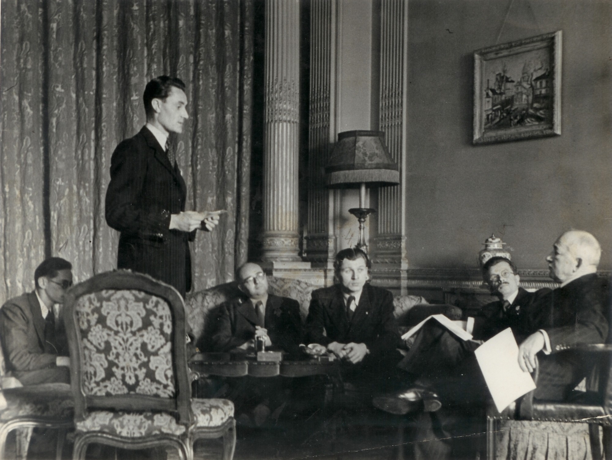 „Naneštěstí jsem se dostal na ministerstvo zahraničí. Vlezl jsem do německýho odboru, kterej vedl Dr. Hajdů, to byl taky můj kamarád, ještě z armády jsme se znali. A byl jsem vedoucí německýho oddělení, šéfem byla potom taky Dr. Sekaninová. Tam jsem byl, myslím, do podzima 48 nebo tak nějak a potom Clementis říká: ‚Podívej se, nemáme lidi, protože tam byly nějaký čistky, tak se to tam hejbalo po únoru 48 – potřebujeme lidi ven! Podívej se, potřebujem obsadit buď Egypt, Ankaru, vyber si, půjdeš ven.‘“