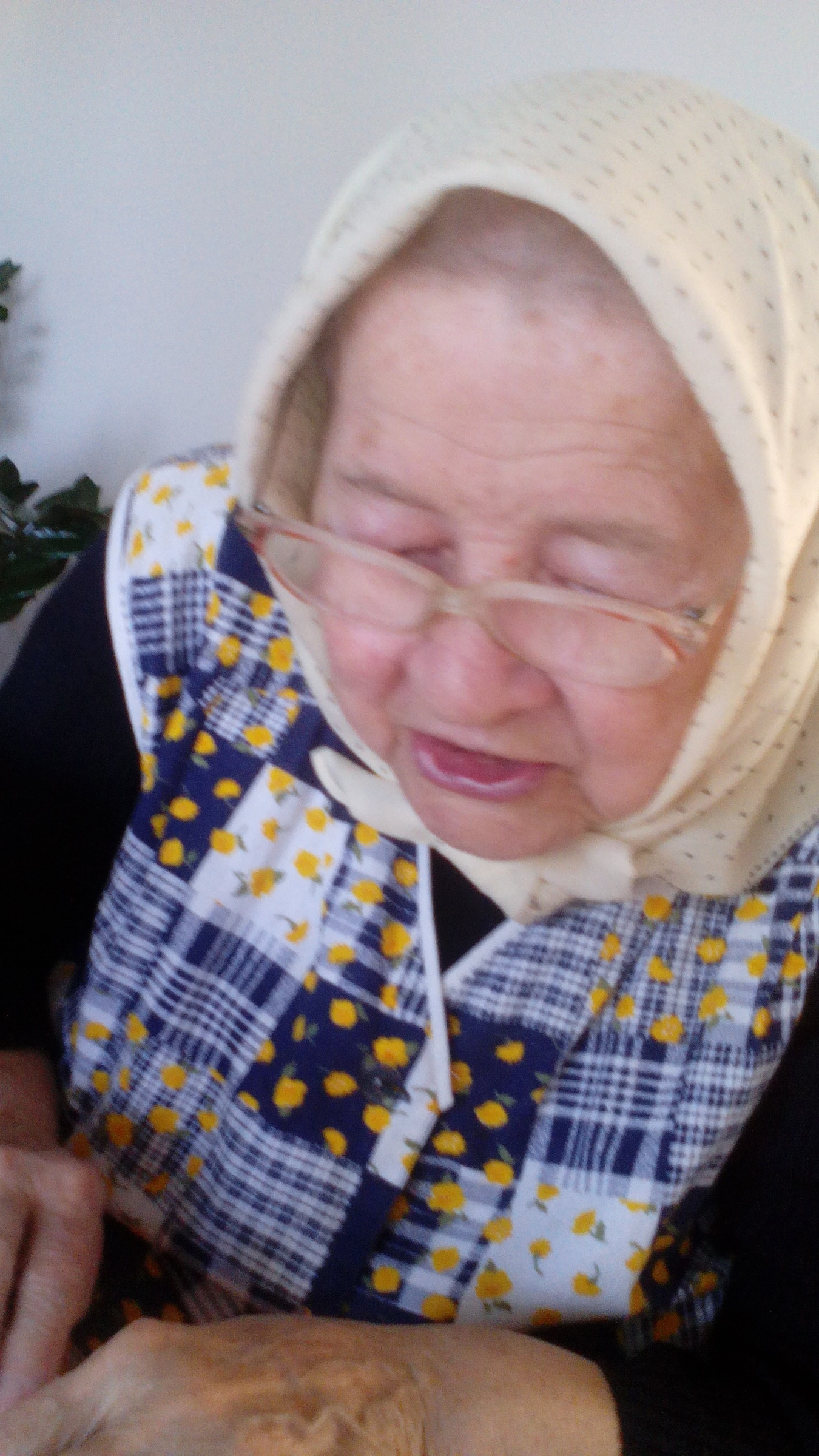 „Tak náš tatínek poschovával, co mohl, ale potom jsme bývali ve sklepě, kde jsme měli brambory a řepu, ale jednou, 14. března, se otevřel sklep a se samopalem Rus, a jestli tam není Němec, a my jsme řekli, že ne, ale on s bajonetem chodil po baráku a všechno prohledával, ale už bylo deset hodin, když další ruský voják přišel s německým vojákem s puškou do kuchyně, bylo mu asi osmnáct let, s velikýma modrýma očima, slzy mu tekly a ten Rus mu strkal bajonet do pusy a na něm kus černého špeku a ten chlapec nemohl a on si myslel, že má hlad, ale chudák nic, a tak jsem se s ním bavila a on říkal, já jsem jediný syn, tatínek padl ve válce a maminka žije sama, a také mně dal adresu, abych jí napsala, že je zajatý, a tak jsem tam i napsala, ale nevím, jestli to tam nebylo vybombardované, tak nevím, jestli to tam maminka dostala, nebo ne.“
