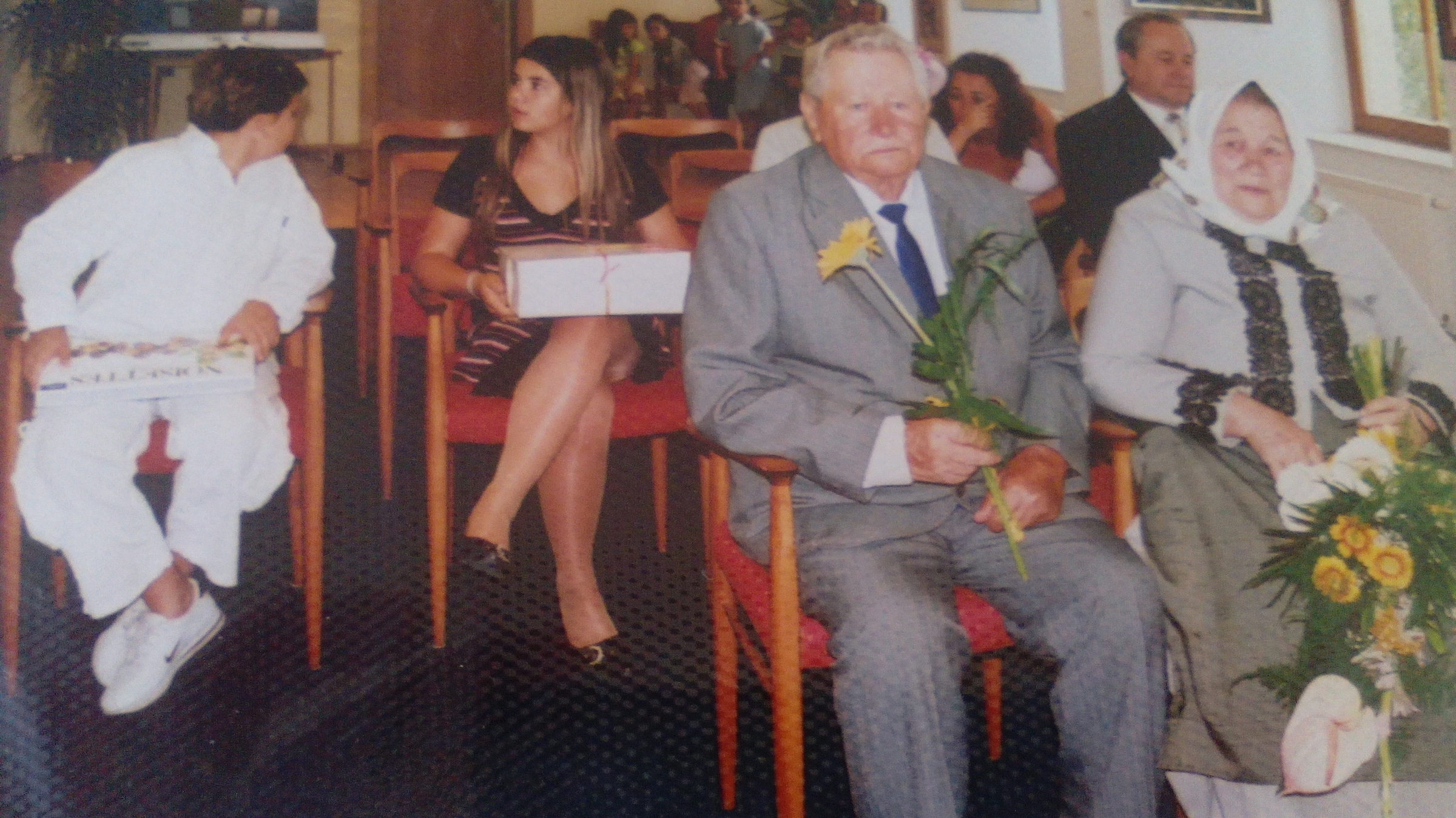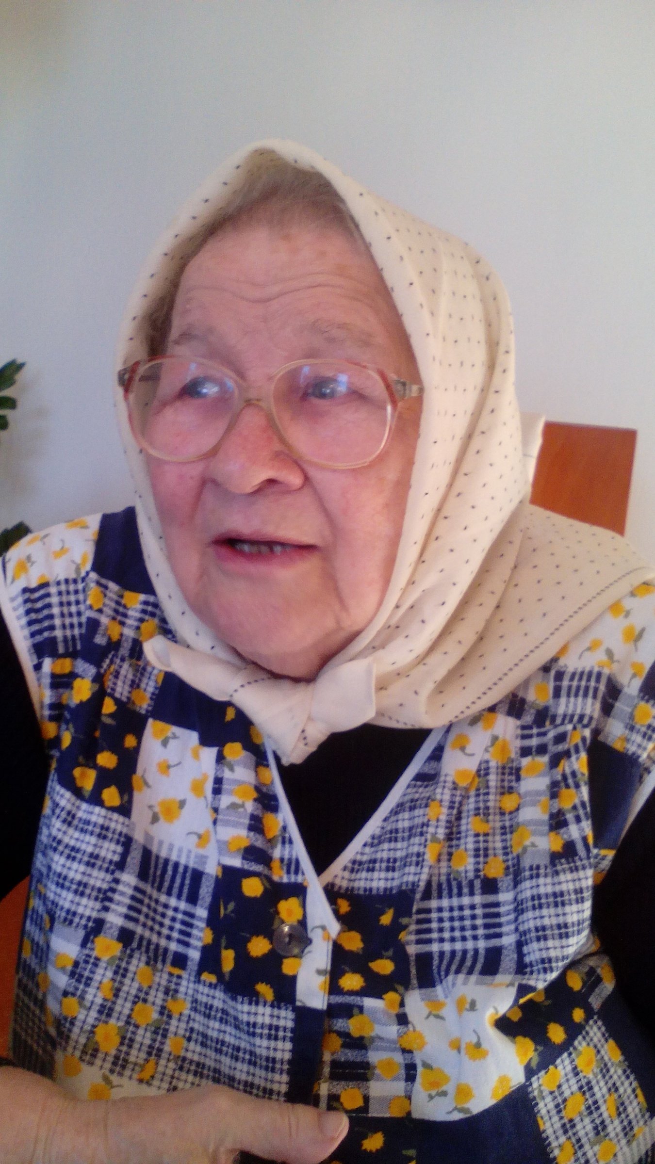„To mně bylo patnáct let a já si pamatuju, že padla bomba před farou a zabilo to faráře a Rumuny a my jsme bývali hodně dole a se sestrou jsme si říkaly, že se tam půjdeme podívat, ale tatínek nám to zakázal, ale my jsme se tam stejně vypravily a viděly jsme v zemi velkou díru a místo hlavy měl farář jen papír, protože mu ten šrapnel, ty střepiny, úplně rozbily hlavu, tož to byly takové dozvuky války.“