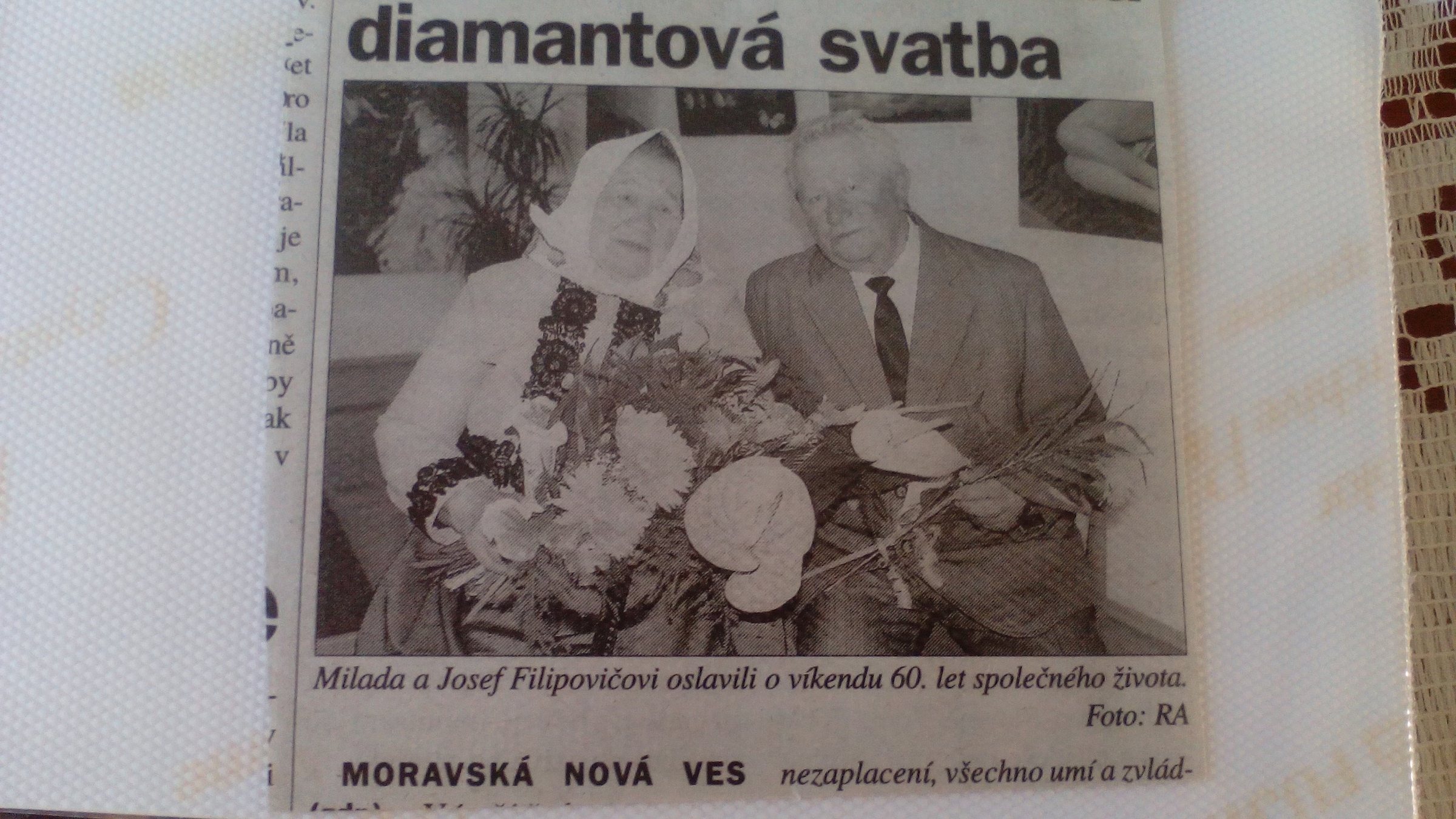 „No jaká tady byla atmosféra? Teď se před děckama říká všechno, tenkrát se neříkalo nic, to bylo takové tajemné... ale já vím, že když jsem se dostala sem, tak manželův otec byl za okupace starostou a pár lidí, kteří neplnili dodávky, tak Němci si na ně posvítili a udělali u nich kontrolu a běda, kdyby u nich našli na černo slepici nebo prase, a když došla kontrola, tak starosta se na ně podíval a taky na policajta a policajt pak jezdil po vesnici a varoval lidi, a když sem došlo gestapo, tak se starosty zeptali, kolik je tady komunistů, a on na to, že tady není žádný komunista, a oni na něj, jestli za to ručí hlavou, a on, že ano... a komunistů tady bylo strašně moc, ale to byli dobří lidé.“