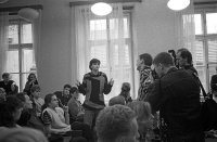 „Měli jsme učitelku občanské nauky, která měla takové velmi stalinistické postoje ještě v roce 1989. A s tou probíhaly střety v hodinách občanské nauky. Pamatuji si, že jedním ze zdrojů velmi ohnivého střetu bylo, když jsem se zeptal - my jsme měli ve třídě nástěnku Lidových milicí a já jsem se zeptal, proč existují Lidové milice, když už nemáme buržoazní třídu. A to byl samozřejmě citlivý dotaz, dobře mířený, myslím si, ze měl velké opodstatnění, proti komu má ta Lidová milice ještě strážit socialismus, když žádný kapitalismus u nás již nebyl. A ona reagovala velmi popuzeně a konfliktně. Ona si po Palachově týdnu nechala ve třídě udělat anketu, co si o tom kdo myslí, a řekla, že se to nemusí podepisovat. Jeden žák z vedlejší třídy to podepsal a potom z toho měl velké problémy, protože tam napsal, že s tou demonstrací souhlasí. Na těch hodinách byla určitá atmosféra takového strachu a myslím si, že jsme tam měli příležitost zažít něco z toho ducha doby, ve smyslu silového mocenského jednání."