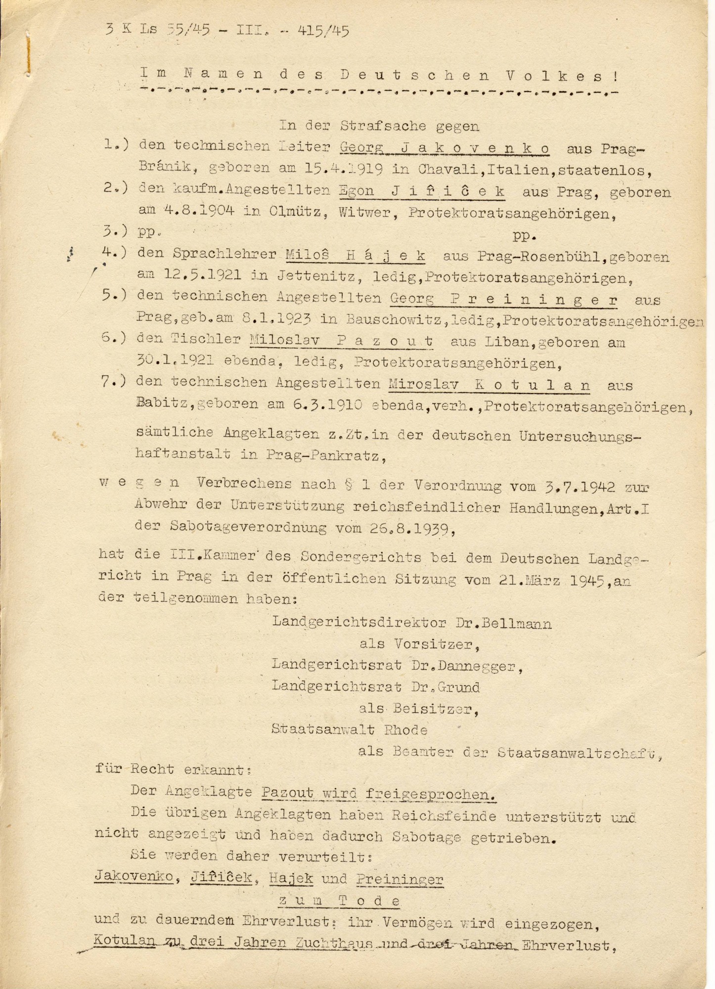 „Tehdy začaly transporty, několik z lidí z Hašomer Hacair se rozhodlo, že nepojedou a pokusí se protektorát přežít pomocí falešných dokumentů. Požádali mě o pomoc. Samozřejmě jsem souhlasil a začali jsme shánět falešné dokumenty. Klukům z buňky jsem řekl, kdo může, ať se zapojí. Celkem se nám podařilo ‚arizovat‘ sedm Židů, dva z nich však později zahynuli, protože pokračovali v odboji a byli zatčeni. Pět lidí ale přežilo. Občanky jsme kradli, vyzmizíkovali a vyplnili na patřičné jméno. V tomto období to asi byla naše nejefektnější činnost.“