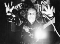 „Já jsem vůbec nehleděl na to, co říkám. Ani jsem to nechválil, ten komunismus. Kritizoval jsem aj tady ty pseudoumělce normalizační, normálně jsem je tam napadal, že to hrají tady... Když jsem to pustil v originále, tak tady to hraje Vondráčková nebo nějací takoví, tak jsem je kritizoval..." - "I na těch diskotékách, do mikrofonu?" - "No jistě, oni tam měli, že mám nevhodné proslovy.“