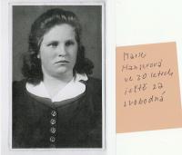 Marie Hauserová, rozená Lišková, se narodila 25. dubna 1924 v Košicích. Vyrůstala v pěstounské rodině, ke které přilnula, v Martinicích u Votic. Rodiče se o ni nezajímali, až později viděla svou matku a zřejmě i svého otce, ale neodešla s nimi. Od svých patnácti let pracovala u místního sedláka, v devatenácti letech se vdala, přesto byla za války odeslána na nucené práce v Lipsku. Utekla a vrátila se domů, poté musela pracovat v továrně na letadla v Praze-Modřanech a nakonec se na základě udání ocitla v Terezíně. Přežila a vrátila se na konci války. Se svým mužem a jeho rodinou odešli do Nové Bystřice, kde se zabíraly chalupy po Němcích, a tam zůstala dodnes. S Josefem Hauserem měli šest dětí a celý život pracovali v zemědělství. Zemřela 19. ledna roku 2018.