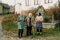 „Tak jsem se dostala mezi lidi a bylo zle, voni nás strčili do strany, komunistický, za čtrnáct dní nás stejně vyhodili, že jsme na schůze nechodili. Manžel, ten vůbec nikam nechodil a já jsem tam pak jezdila na funkce, vyprávěla jsem o tom JZD, jen o tom zemědělství. No a pak přišly děti, já jsem tady měla manželovu maminku, a tak jsem zůstala doma s dětma a maminkou... Co pro mě udělali, já jsem vod nich nic neměla, akorát když jsem dělala v kravíně a děda na poli, tak jsem od nich dostala diplom za práci... Družstvo tady bylo, celkem dobře se mu dařilo, hned ze začátku, to jsme byli malý družstvo... šlo to, jak se dalo. Pak se to spojilo a už to nebylo vono, cizí lidi.“