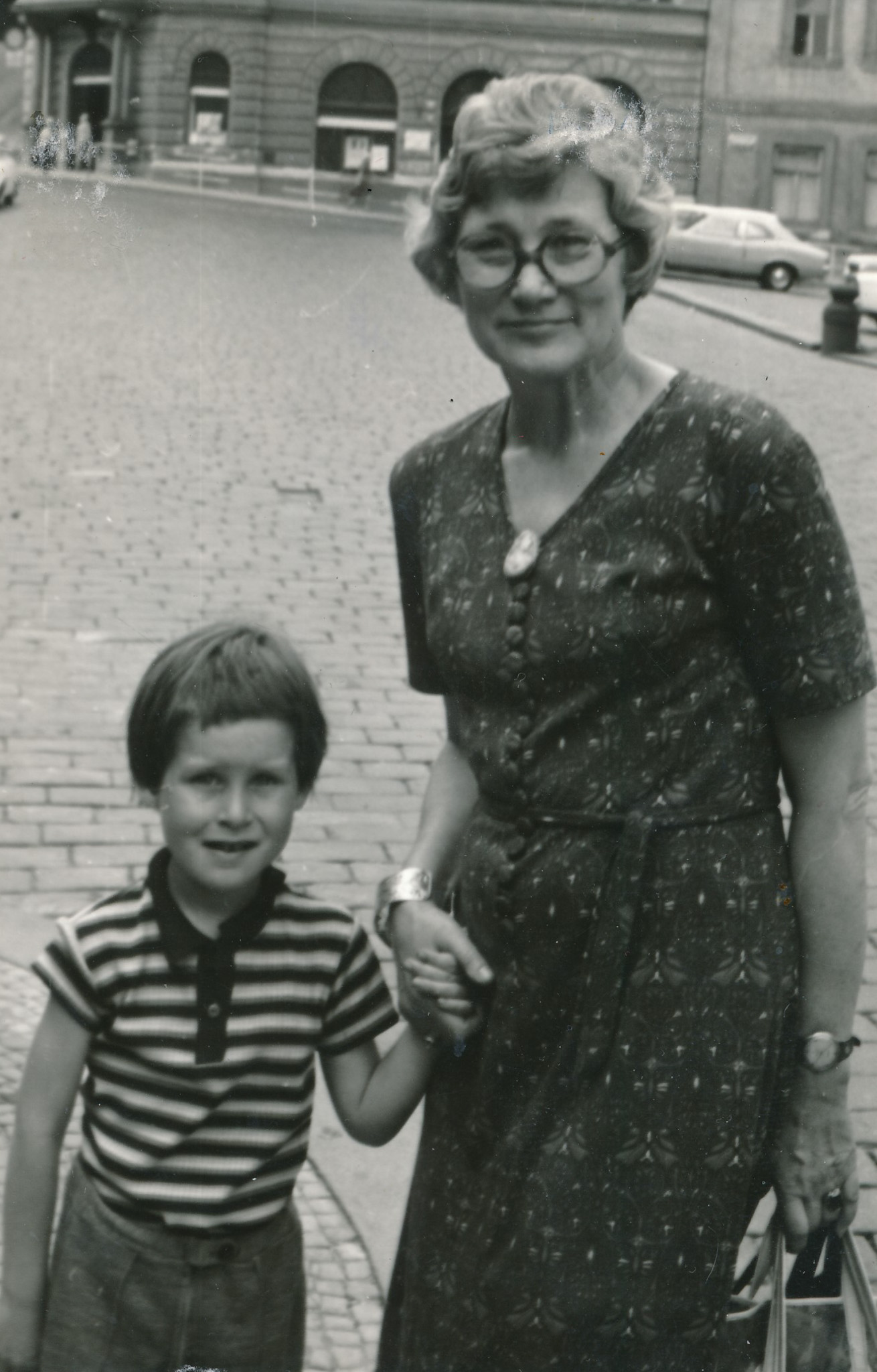 „A sice já jsem byla sledovaná dokonce už před podpisem [Charty 77] mého muže, protože jsem byla v kontaktu s Bonaventurou Boušem, který už byl starý pán tenkrát, to byl kněz a bydlel sám. A telefonoval mi, což jsme samozřejmě dělali neradi, ale telefonoval mi, že jde k výslechu. A byl z toho velmi nervózní. A tak já jsem mu říkala: ‚Tak přijďte předtím na oběd.‘ Tak přišel ke mně na oběd a ode mě šel k výslechu. A nato jsem byla tři dny sledovaná. A sice, když jsem šla s kočárkem, tak tam stál nějaký člověk, který měl kapuci. Neviděla jsem ho, nevím, kdo to byl. A ten zašel do domu a poslal někoho jiného. A pak za mnou chodil velmi okatě naopak nějaký muž, který, pak jsem zjistila, že to byl Slovák, protože když jsem šla do lékárny, tak on si stoupl ke kočárku, na kočárek s dcerou – koukal do něj. Tak já jsem honem vyběhla, vzala jsem dítě a vzala jsem si ho s sebou do lékárny. Načež on šel za námi, já jsem si tam něco brala a on byl na řadě za mnou a říkal, že chce rumanček. A evidentně to tedy byl Slovák. Ale kdo, to nevím, nikdy jsem ho jinak neviděla. A tři dny za mnou takhle chodil krok co krok. Takže já jsem nemohla vůbec nikam vylézt. Ale tím to skončilo.“