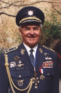 „Na jaře 1944 jsme odjeli do Ruska, no a pak jsme byli přeškolovaní na sovětské aeroplány a tam byl nějaký velitel, který za každým slovem pomalu měl, ten Rus, ‚eto zakon‘, tak jsme mu říkali: Etozakon. Protože všichni jsme měli nalítáno spoustu hodin, takže jeden udělal cvičnej okruh a řekl: ‚Davaj.‘ Tam to proběhlo rychle a pak jsme pořád buzerovali, že chceme na frontu. Tak tam přijela taky delegace, kterou vedl Fierlinger, Nejedlý… Nejedlý nám říká: ‚Ale chlapci, nikam nespěchejte, my vás ještě budeme potřebovat.‘ Myslel, že z nás udělá takovou pro ty, co přijdou z Anglie. Jenže se to nepovedlo. No a pak jsme teda byli přesunuti na slovenské povstání – 17. září 1944 – no a tam jsme bojovali ve Slovenském národním povstání. Tam to byly lety jako partyzáni. Tam to bylo daleko složitější, protože Slováci měli výstroj stejnou jako Němci. A teď v tom horským členitým terénu vyhledávat kulometný baterie, to bylo složitý. My jsme tam byli jako stíhači. Takže my jsme napadávali Němce, kolony aut německých. Tam to byl tvrdej chlebíček.“
