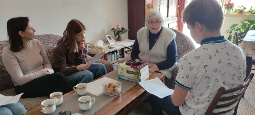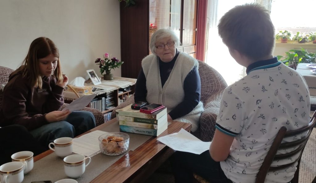 Magdalena Hojková s dětmi ze ZŠ Cesta při natáčení PNS, 2022;