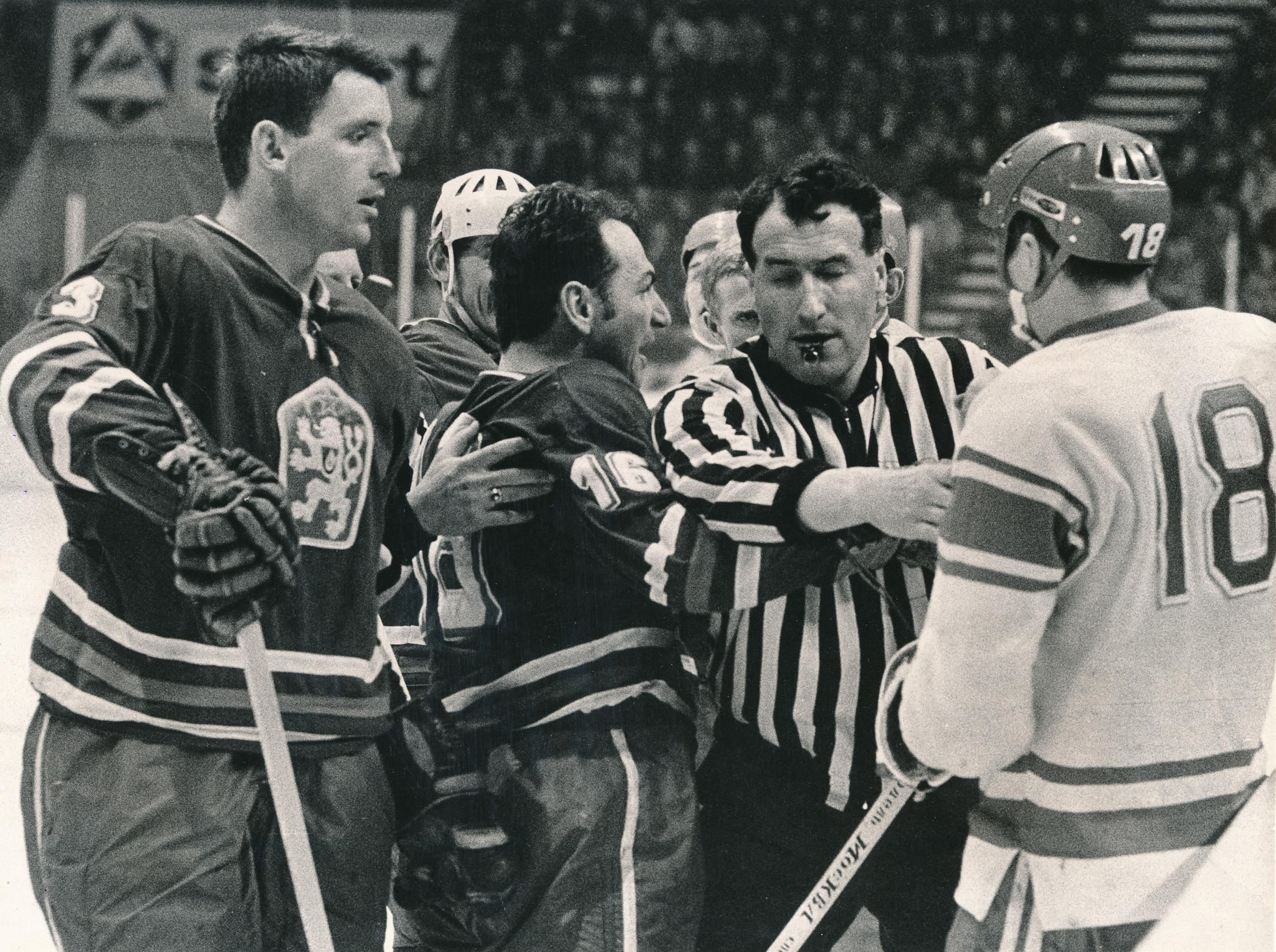 „Samozřejmě, že jsme odjížděli na mistrovství světa s tím, co jsme si za ten rok prožili, jak se to dál rozvíjelo. V tomhle období to nebylo tak dávno. Byl srpen a odjížděli jsme na mistrovství světa v březnu. Pořád ještě panovala nálada ve společnosti, že to snad přece jenom nebude tak tragické, jak to teď momentálně vypadá. Teď už začínala nenávist vůči Rusům stoupat, protože na jednu stranu měli někteří naději – a někteří už věděli racionálně, že Rusové mají všechno pod kontrolou a už to u nás nepustí. Všechno se opakuje, podívejte se na výsledky historických střetnutí, co mají Rusové od té doby za sebou. Měli jsme všichni pocit, že musíme udělat lidem radost. Musela se tomu dát nějaká forma už na závěrečném soustředění, kdy jsme bydlívali před akcemi v hotelu Hubertus na Jílovišti. Měli jsme poradu v salónku vedle, trenéři se sešli, předseda svazu Andršt, sešli jsme se hráči, trenéři a všichni, kdo měli odjet, abychom se domluvili, jak postupovat vůči Rusům. První věc byla otázka výkonu, sportovní, připravit se na co nejlepší výkon. Druhá otázka byla, jak se vůči nim zachovat. Už tam padaly názory, že jim nepodáme ruce, že se to musí dodržet. Že nebudeme o tom mluvit, ale ať zápas skončí, jak skončí, nepodáme jim ruce a odjedeme. Takhle to dopadlo, povedly se nám naštěstí oba zápasy, ruce jsme jim nepodali. Byli trochu opaření.“