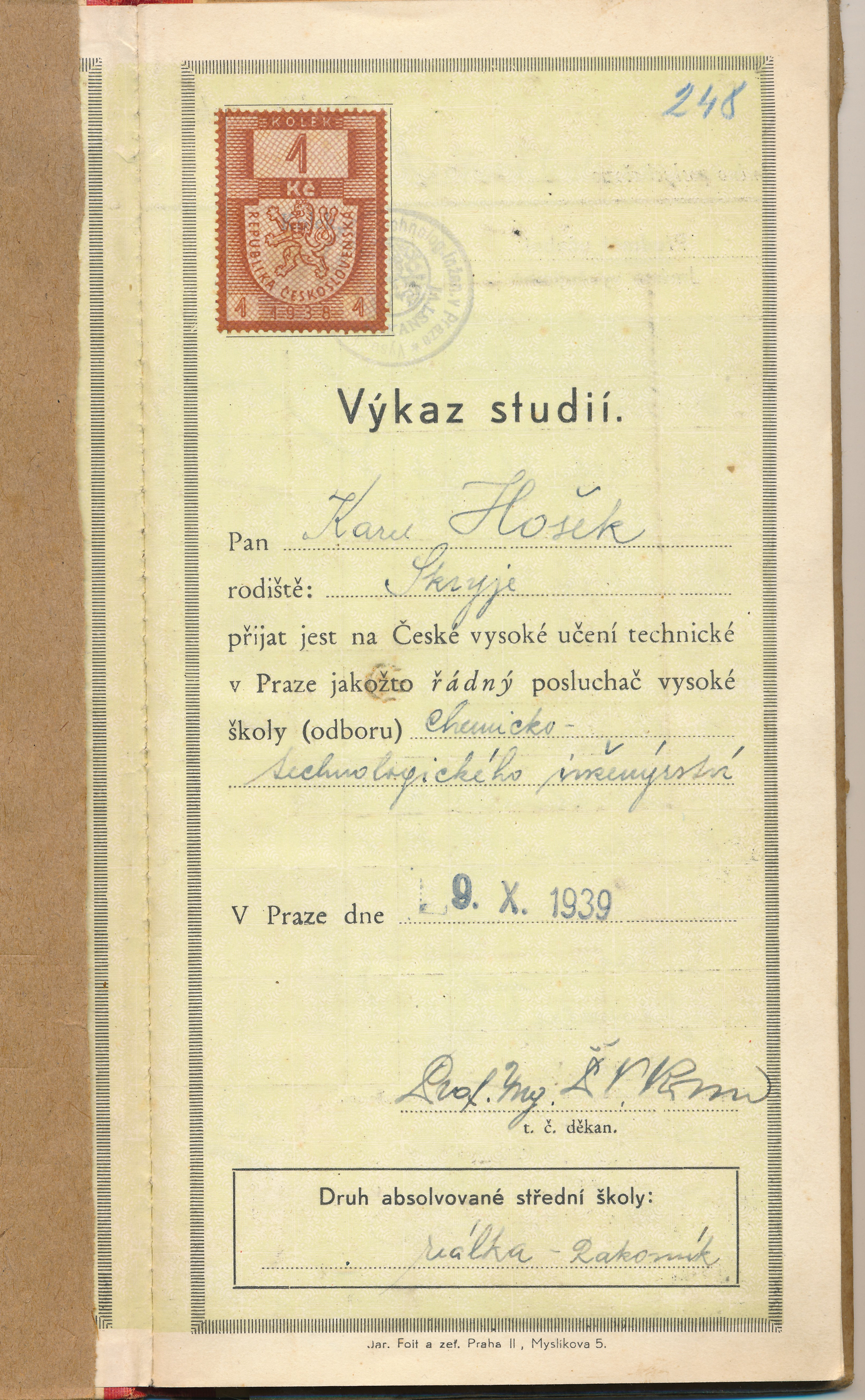 „S Tomášem Garriguem Masarykem jsem se setkal, když se přepravoval na prámu. Já mezitím čekal, až mě převozník převeze přes řeku s kolem – v pondělí jsem vždy jezdil na kole do školy. Pak jsem ho viděl na smrtelném lůžku, když jsme se jako studenti sebrali a na svůj náklad a popud ho v Lánech navštívili.“