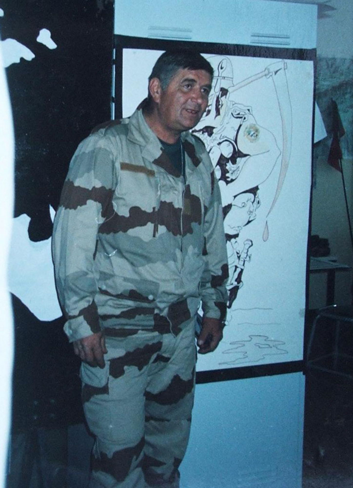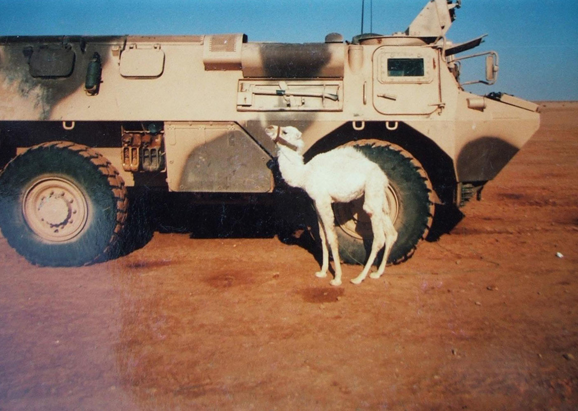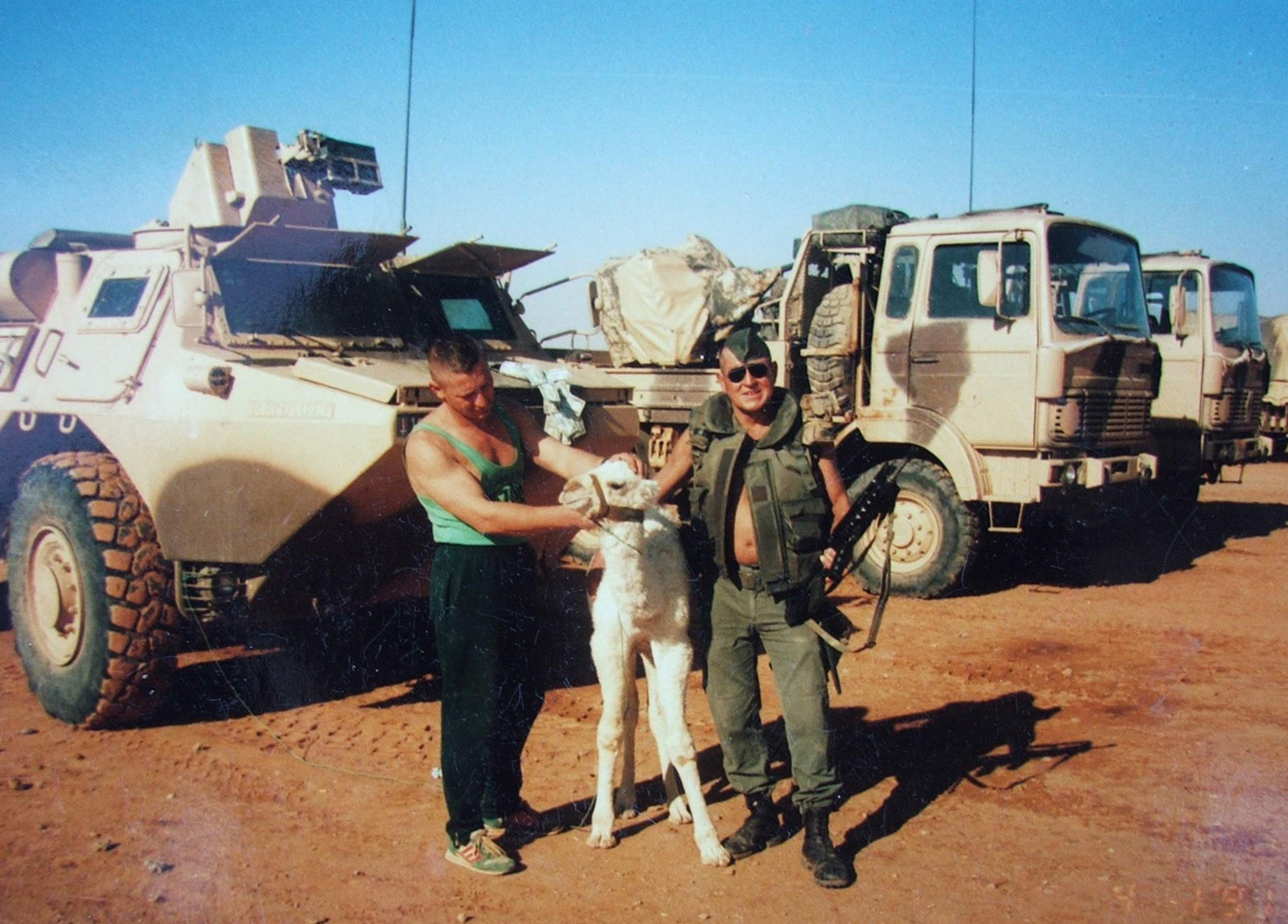 „V Saúdské Arábii, u Kuvajtu, tam to bylo špatné tím, že jsme nevěděli, co bude. Patnáct kilometrů v noci jsme někam jeli, protože ten blázen (Hussain) tam pustil nějakého Scuda. (…) Z bojových plynů jsme tam měli strach. A že tam byl. Šel jsem si tam s (ještě s jedním Čechem) Svobodou kupovat hodinky. My jsme byli ve francouzské uniformě a slyšíme je se bavit. Strčil jsem do něj a říkám mu francouzsky: ‚To jsou Češi.‘ A on na to: ‚Jdeme k nim. Dobrý den.‘ Oni na nás koukali. ‚Vy jste z Francie, vy umíte česky? Aha legionáři?‘ Tak jsme se pobavili. Ti tam udělali dobrou práci. Když něco bylo, tak to odhadli dobře. Měli jsme tam malého bílého velblouda, udělali jsme mu také plynovou masku, nestačili jsme mu však masku nasadit, bylo to rychlé, když jsme se vrátili, byl mrtvý. Takže ten plyn tam byl.“