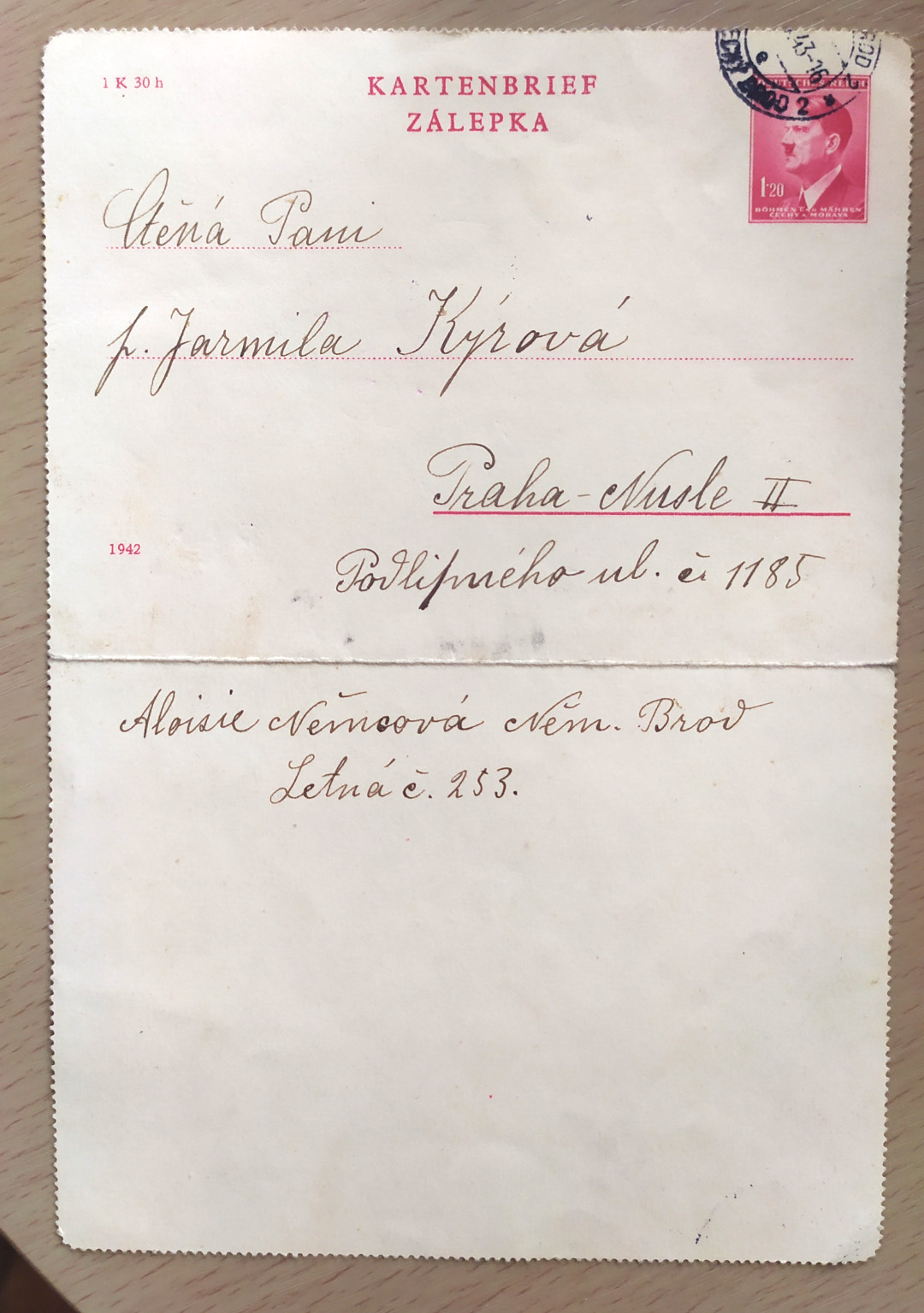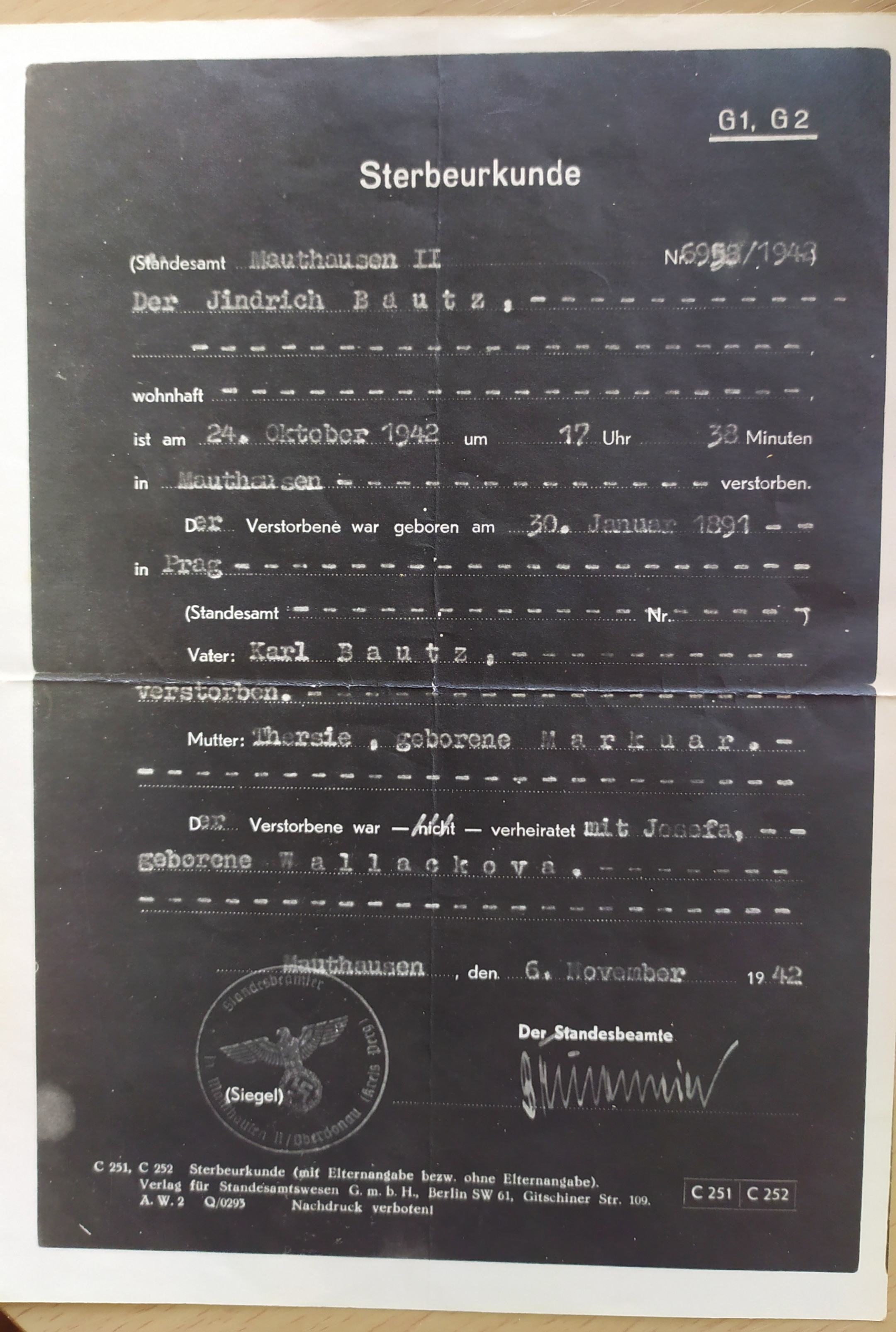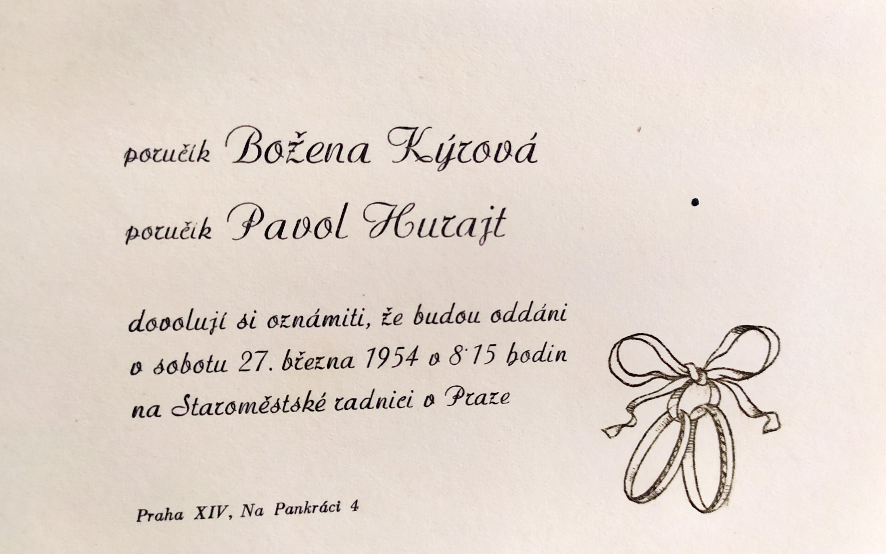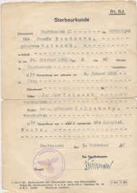 „Nejdříve tetu odvezli to Petschkova paláce, strejdu také, tam byli vyšetřovaní, a pak do Mauthausenu. V Mauthausenu byla popravená. Co vím, tak tenkrát se říkalo, že v plynové komoře, ovšem teď nevím – spisovatel, který o tom všem píše, o heydrichiádě [Pan Čvančara?], tak u nás byl a něco, s nějakými věcmi, které máme, se seznámil. Ten říkal, že byla ne popravena v plynové komoře, ale zastřelena jako strýc. Ale nevím, co je pravda a co ne. Prostě my jsme žili v tom, že teta byla popravena v plynové komoře a strýc že byl zastřelen.“