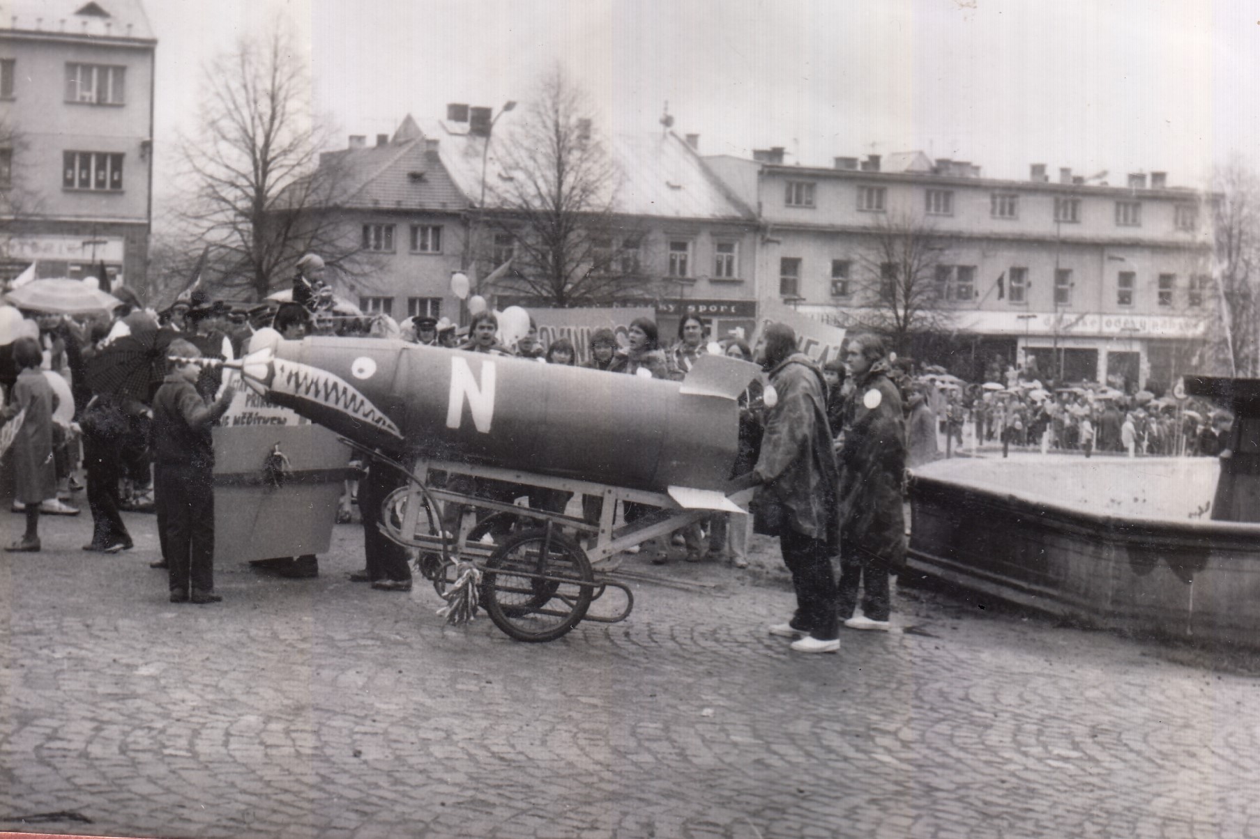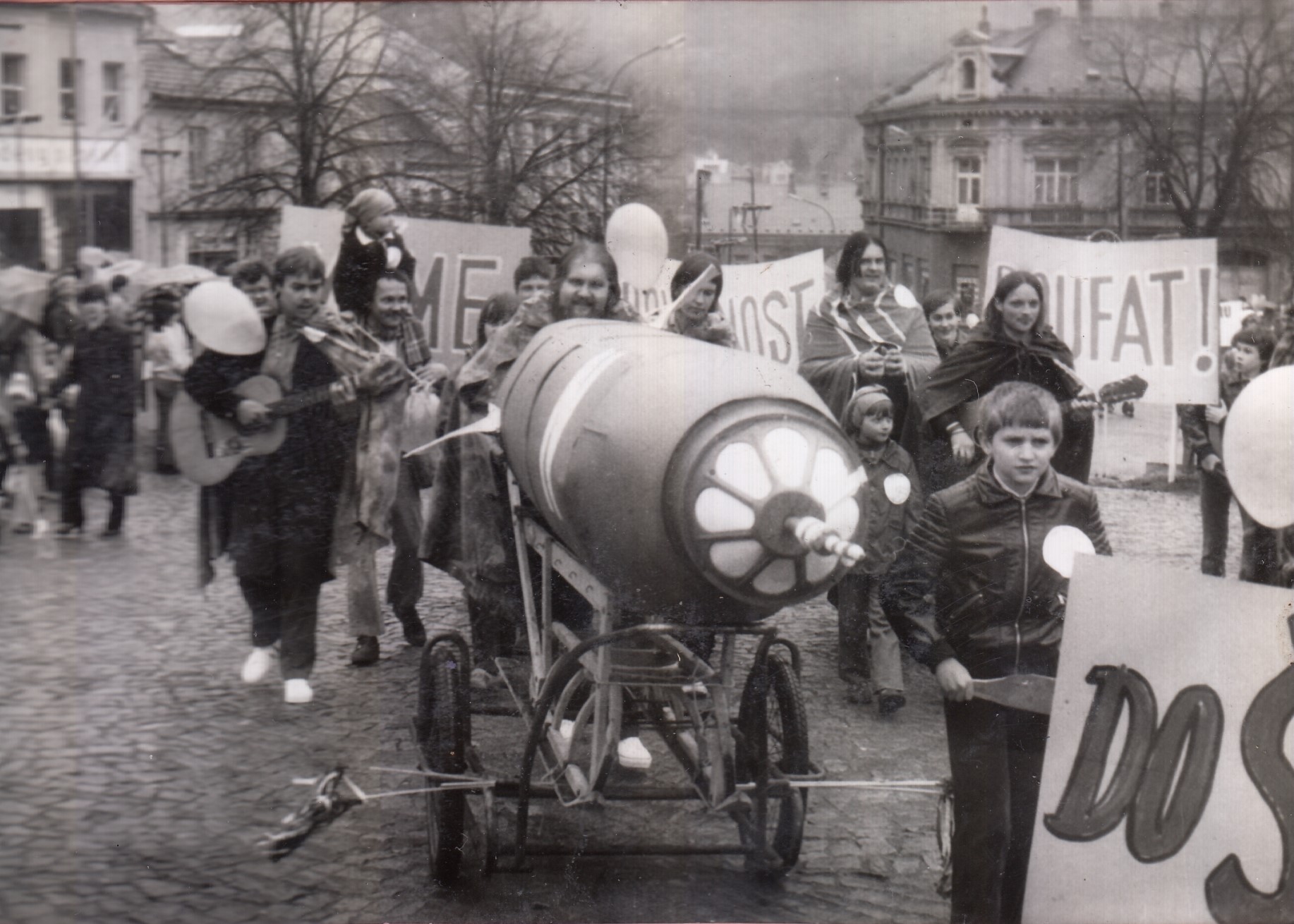 “Letělo letadlo – Čmelák. A 25 studentů na tom hlavním náměstíčku před lázněmi [v Luhačovicích] zalehlo na zem, všichni ruce za hlavou a křičeli: ‚No Russians, no bombs! No Russians, no bombs!‘ [Žádné Rusy, žádné bomby.] Okamžitě tam byla policie a zatkli nás. Zahraniční studenty potom po vysvětlení, že jsou popletení, propustili. Mě si na stanici ale nechali přes noc. Pak jsem v celostátním centru Studentservisu složitě vysvětloval, že jsem kamarádům nestihl vše vyložit. Ale byla to spíš velká sranda.“