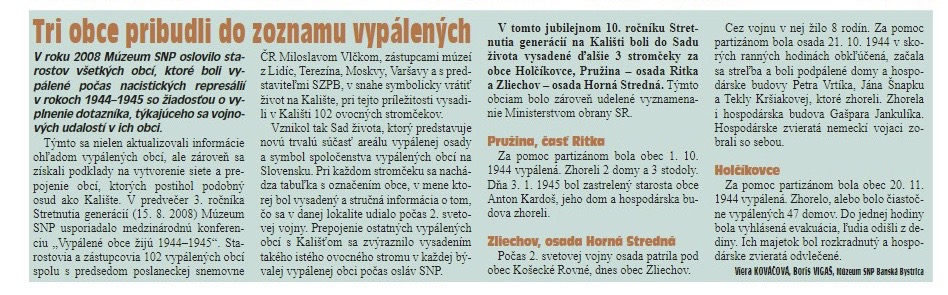 • "Then they gathered the guys under the maple, putting them in line. Those who wore caps had their hair messed up in all sorts of ways, filming them as partisans. Then those who were from Rovné or Zliechov, saw in Bratislava in a journal, that it was in Stredná. So it was like this. Practically when they didn't find any more partisans here. But as they fired from this hill there and from there again. And so it happened that they shot one of their soldiers here. Of course they said the partisans shot him. " 0:23:51 - 0:24:38
