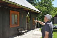 • "So it was October 20, 1944. I remember, it was quite cold, it was autumn. The days were short. The unit moved here at night or in the morning. They occupied this settlement. It's here in this pit. There is the road, there were soldiers in place. Then they were on those hills. They were there on that side too. At six o'clock in the morning, without any warning, they opened fire. They simply fired live ammunition. We, where this wooden house is, - my father was a soldier, so we had to get to the ground right away. And as they fired, the bullets hit as we lay, about half a meter above our feet. My father conducted us like that. We had a cat, it jumped to the ceiling. It was a rumble, machine guns and those incendiary bullets. This cottage was caught right away from those incendiary bullets, it was on fire. Then, when they shot it, they lunged - shouting, 'Halt! Komm! And I don't know what else. They drove people out, they had to go out. Then the people – the fire started - they had cattle here, so we drove it out. To at least save that. " 0:20:18 - 0:22:13