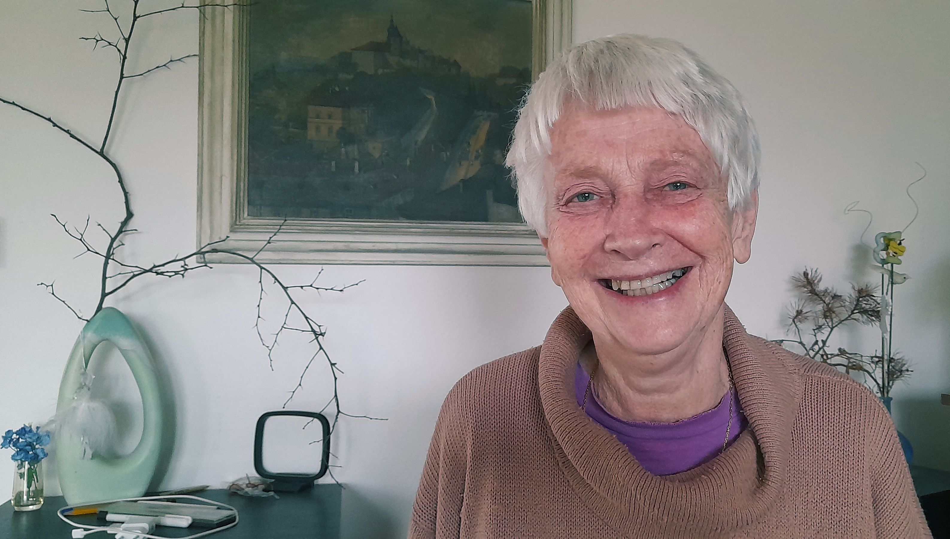 „Byla jsem v té době v Anglii, promítali nám tam, co se děje v Praze. Byli jsme možná lépe informovaní, než ti, co tam byli. Naši mi poslali dopis. Obávali se, že mi nedojde, tak ho poslali do Polska jejich známému, profesorovi urbanismu, a on to poslal mně, aby to bylo posláno z Polska. Naši mi psali, abych v Anglii zůstala. Já ale nechtěla, neměla jsem na to. Mě by to tam nebavilo. Tady je to daleko hezčí.“