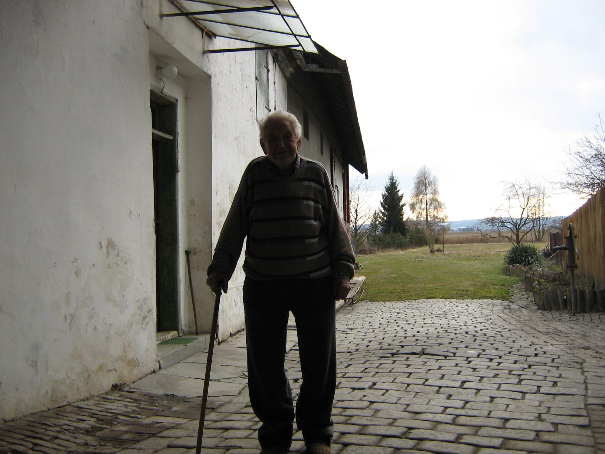 „To bylo tak, tam byl takovej pán a měl majetek. A ranilo ho. Už ležel jenom jako lazar na lůžku, a tak dal ten svůj majetek sousedovi Pospíšilovi. Jmenoval se Zikmund. Tak tomu Zikmundovi dal takový menší hospodářství. Dal mu plný vybavení, koně, všechno, aby mohl hospodařit, a sedm hektarů. A on si toho raněnýho Drbohlava vzal k sobě a za to, že mu dal ten majetek, tak ho udržoval. A ten Drbohlav nám dělal učitele. Ležel na posteli a učil nás. Já jsem měl tenkrát tak sedm, osm let.“