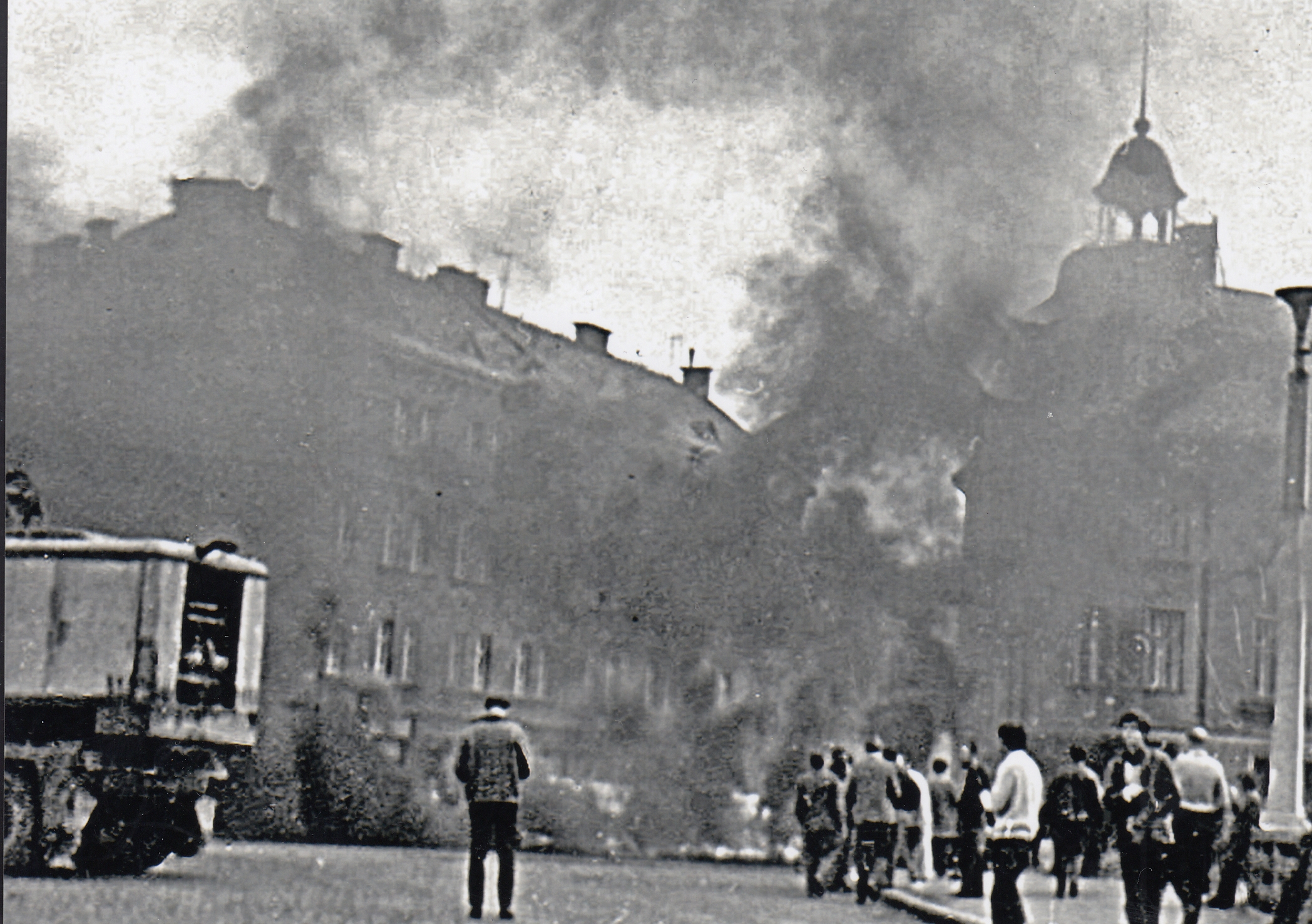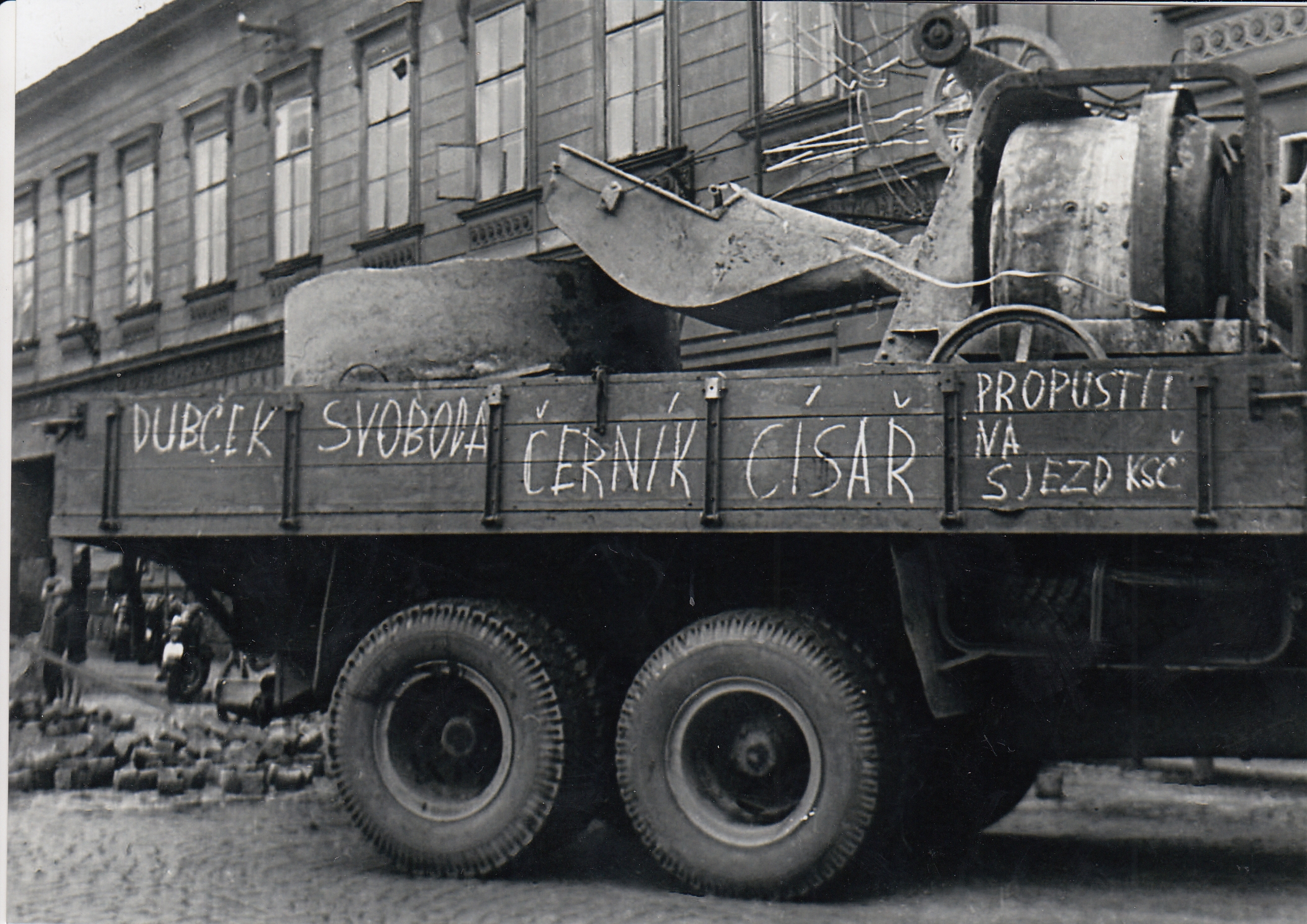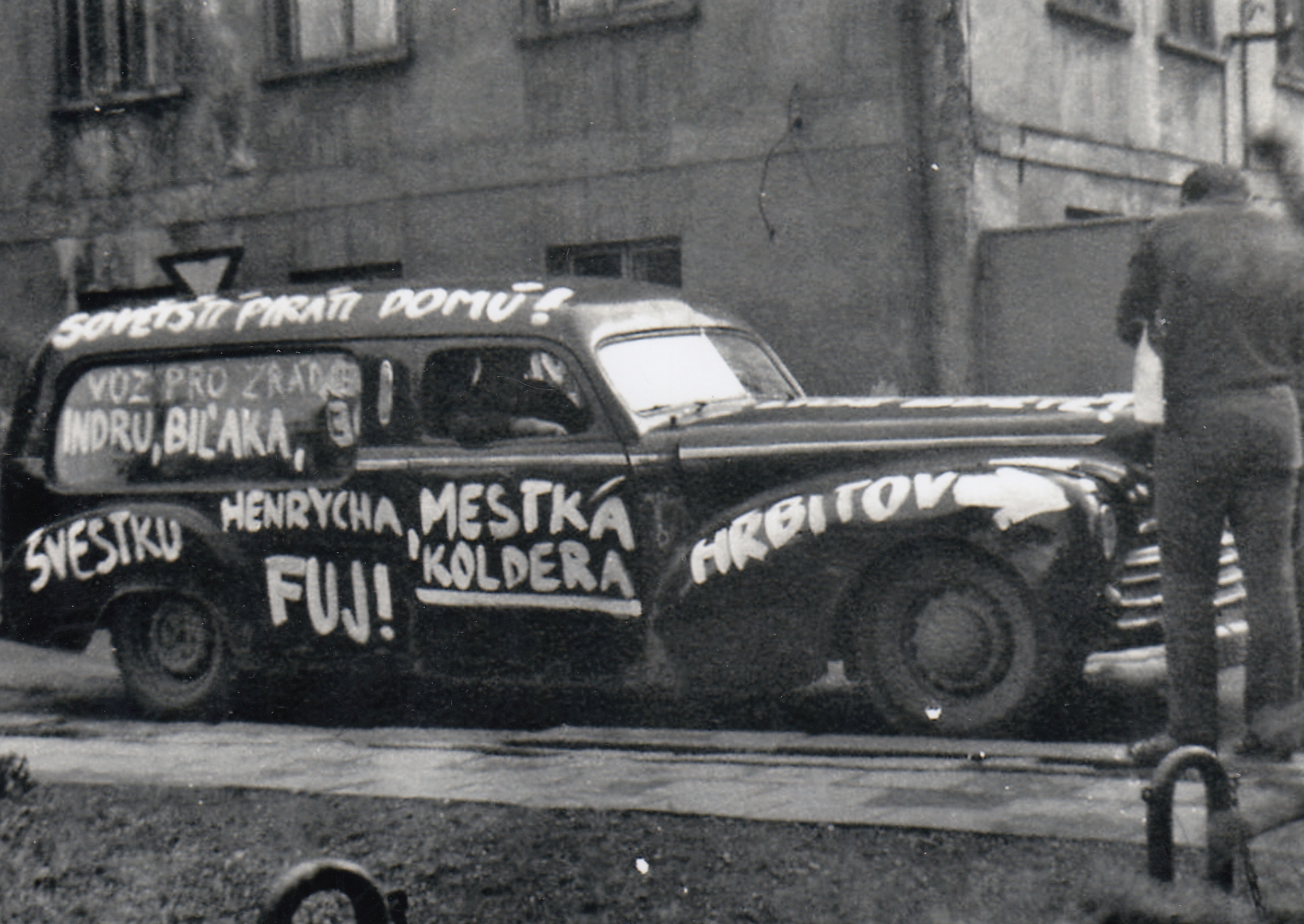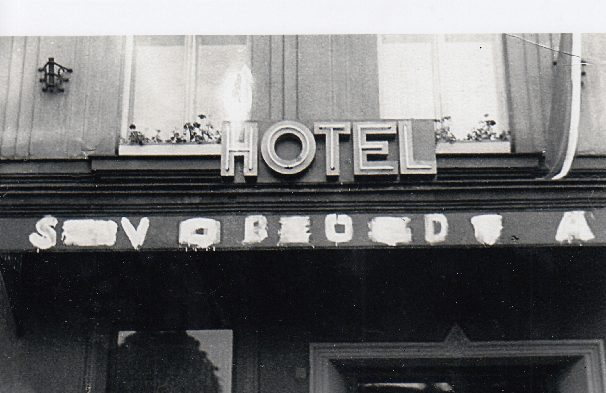 Hotel Moskva v Trutnově přepsali protestující občané na hotel Svoboda. Cyklus fotografií Jaroslava Jirmana z bouřlivého odporu občanů během srpnové okupace 1968