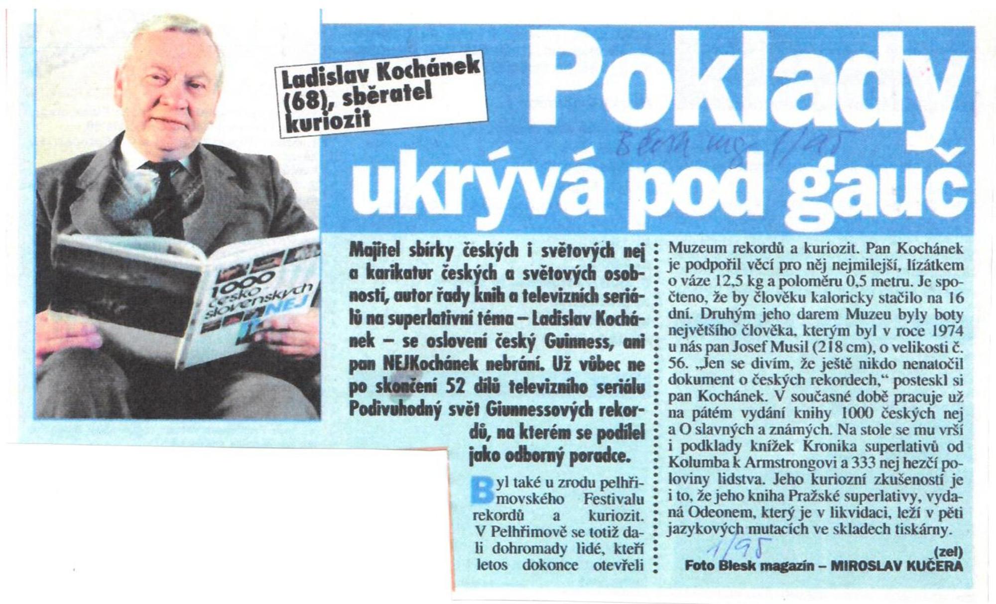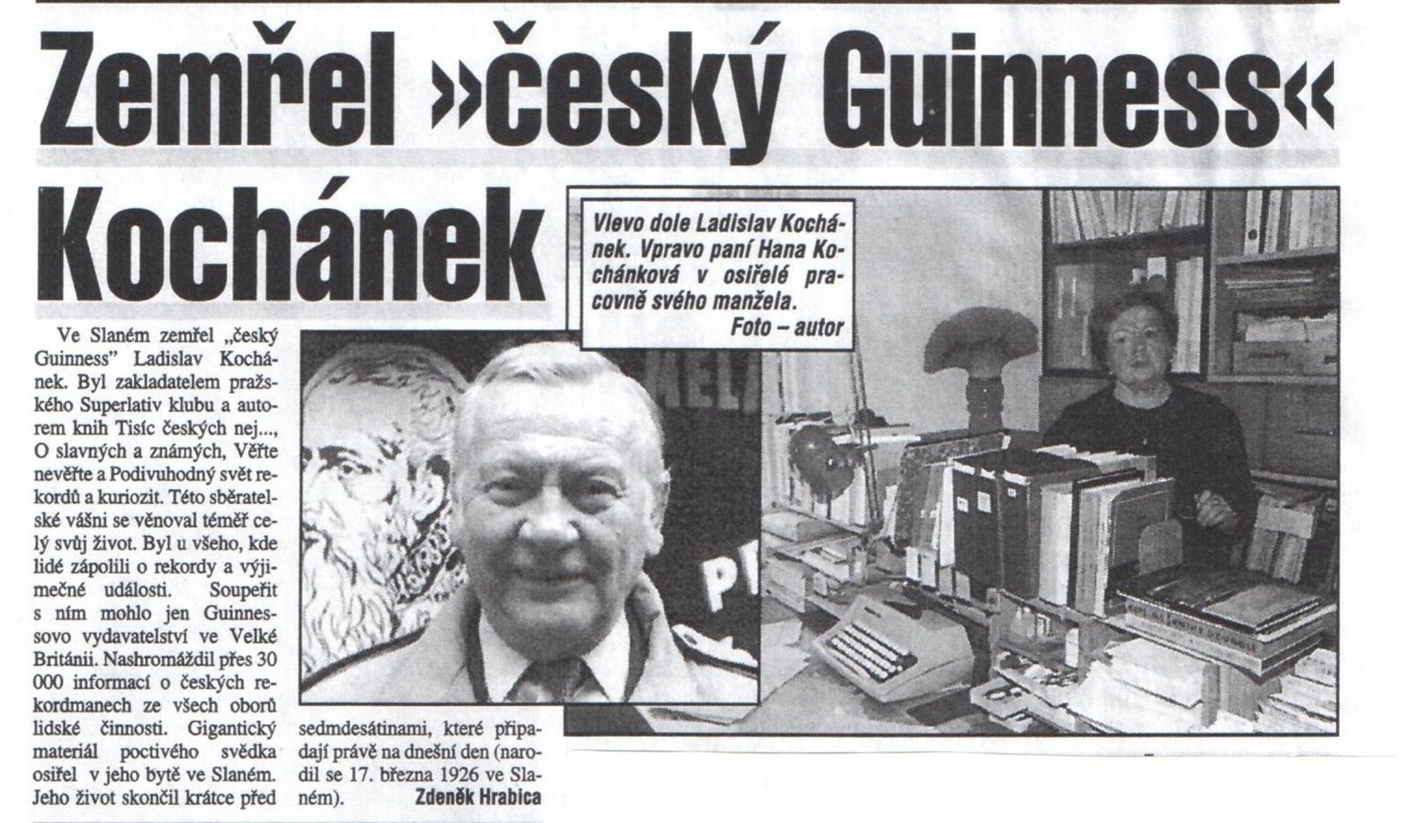 „Manžel byl taková hračička, ve škole se nechtěl učit zpaměti, tak si dělal poznámky. Jakým způsobem to dělal, to už nevím. Zalíbilo se mu to a postupem času si začal dělat i z jiných oborů, objednával si časopisy, v kterých se psalo o novinkách, to všechno si začal registrovat a takhle nějak to začalo. Lidi mu začali psát, dělával besedy, soutěže. Po vydání knihy začal spolupracovat s Pelhřimovem a televizí.“