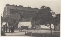 „Na jatkách (v Pardubicích) došlo k tomu, že tam vtrhlo gestapo a zavřelo vrata a všechny vyhnali ven z pracovišť a zjišťovali, co se tam děje. Bylo to na udání, protože se tam kradlo. Každý měl rodinu a děti... a proto to (táta) dělal – kvůli rodině. Pak to skončilo tím, že jich asi patnáct zavřeli. Bylo to v červenci 1943. Za měsíc je odvezli do Prahy, soud tam trval celý den, až kolem půlnoci vynesli rozsudek. Byla jsem tam s maminčiným bratrem, strýčkem, který bydlel v Praze. Jediného tatínka pustili domů. Dostal jedenáct měsíců. Ostatní... jinak tam všichni zůstali. Dva byli popravení, veterináři dostali několik let... ale ti dělali takové věci, že ten jeden měl prý v Praze známost a posílal tam kufry masa. Ohrožoval nejen sebe, ale i ostatní... a dopadlo to takhle hrozně.“