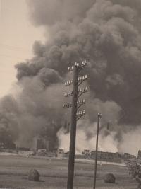 „Pan Hájek, jak začaly houkat sirény, okamžitě přijel, měl takovou funkci v naší ulici – že trval na tom, abychom se šli schovat do krytu. Nám se tam nechtělo, protože to bylo velmi zajímavé. Byl to první nálet. Nikdy jsem neviděla letadla v akci. Ještě nepadaly bomby, ale už bylo odhoukáno, že je nálet. A v tu ránu tam ta letadla byla. Bylo to úplně nádherné – jak byla seřazená na nebi. Byli jsme opření o dům a dívali se. Nechtělo se nám do krytu. Ale měli jsme strach, a tak jsme tam šli. Měla jsem tehdy hrozný strach, že všichni umřeme.“
