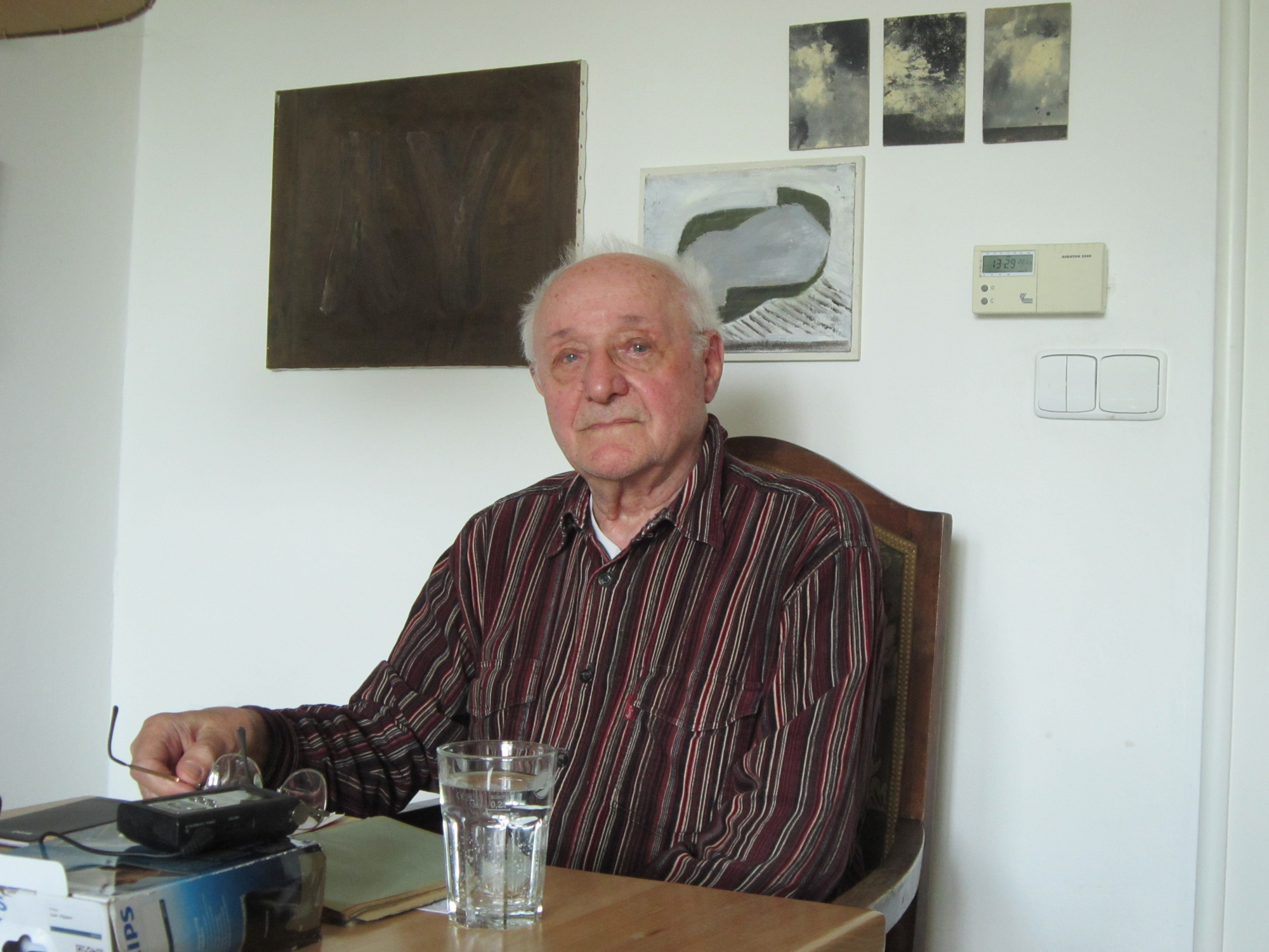 „Já jsem měl obrovské štěstí, protože ta střelba se odehrála v bezprostřední blízkosti našeho domu, poněvadž jsem bydlel ve středu města. Můj starší syn se při té střelbě zúčastnil toho malování na tanky. Já jsem ho šel hledat. A když jsem viděl tu beznadějnost toho hledání, tak jsem šel domů. A právě přes město projížděly ta vojenská auta a tanky ve směru na Brno. Schoval jsem se v takovém malém zákrytu naproti hotelu Grand. A v duchu jsem si přál: Pane Bože, kdybych já mohl tu silnici přeběhnout a uchýlit se do Grandu. Poněvadž jsem věděl, že za těma mohutnýma zděma je možnost úkrytu. V tu ránu se na křižovatce spustila palba ze samopalu, protože Grand byl naneštěstí osvětlen. A ti chlapci, jestli byli pomatení, prostě ty skla a vchod, co vedly do ulice, prostříleli a já jsem se choulil v takové úžince. Takže mě to minulo. Oni projeli. Takže jsem úplně zničenej přijel domů a řekl jsem, že Tondu jsem bohužel nenašel. Manželka s Pavlem byli naprosto zničení, protože rachot z té střelby na každého doléhal. Za chvíli přišel Tonda. Řekl: ,No tak vyměnili jsme pár ukazatelů.‘ Což byla bohužel hlavní příčina toho zmatení. Tak přišel zdravý domů.“