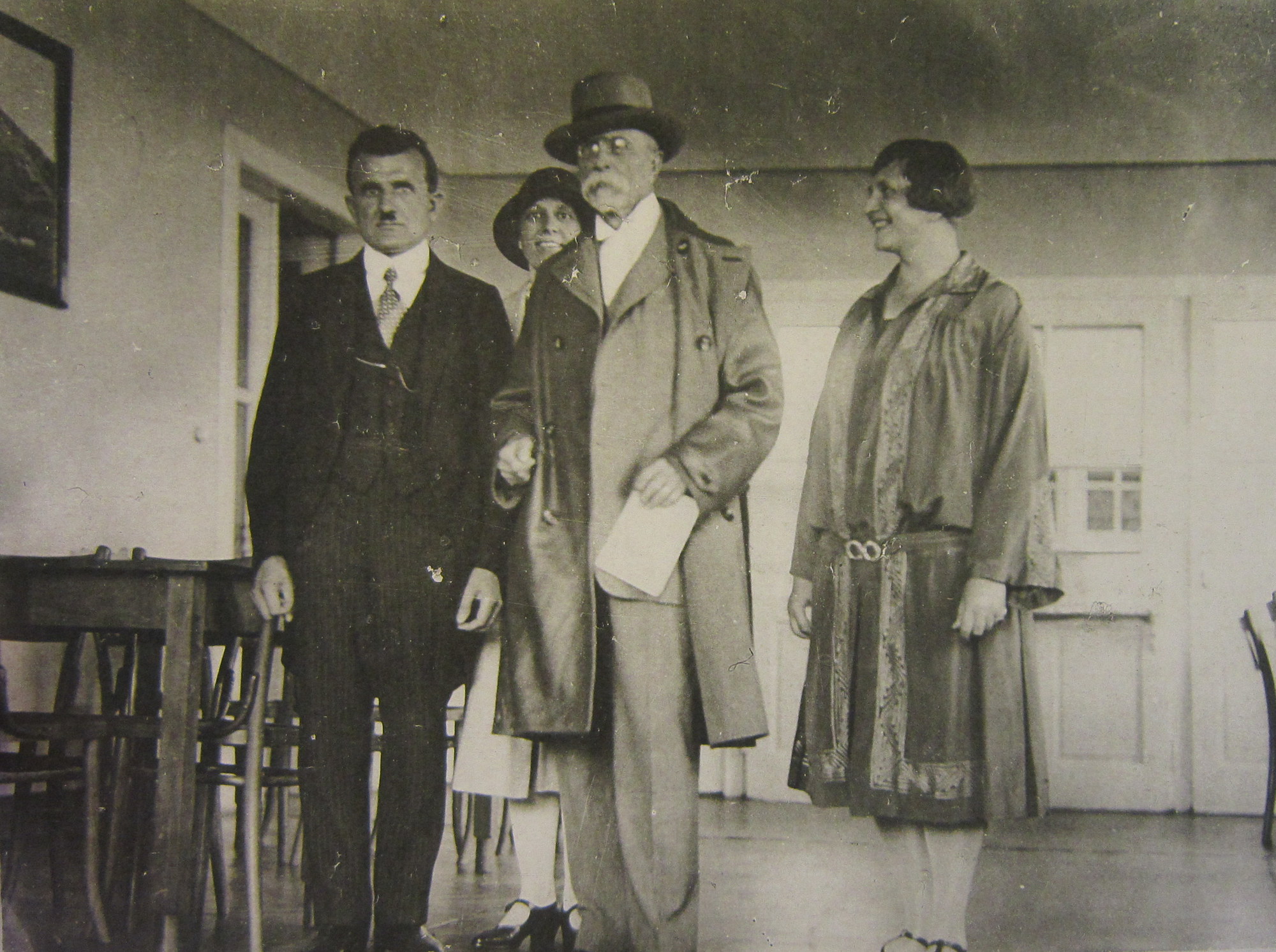 T. G. Masaryk s dcerou Alicí při návštěvě Americké domoviny v roce 1928. Pan prezident v ruce drží obálku se šekem na 70 tisíc, který daroval Americké domovině