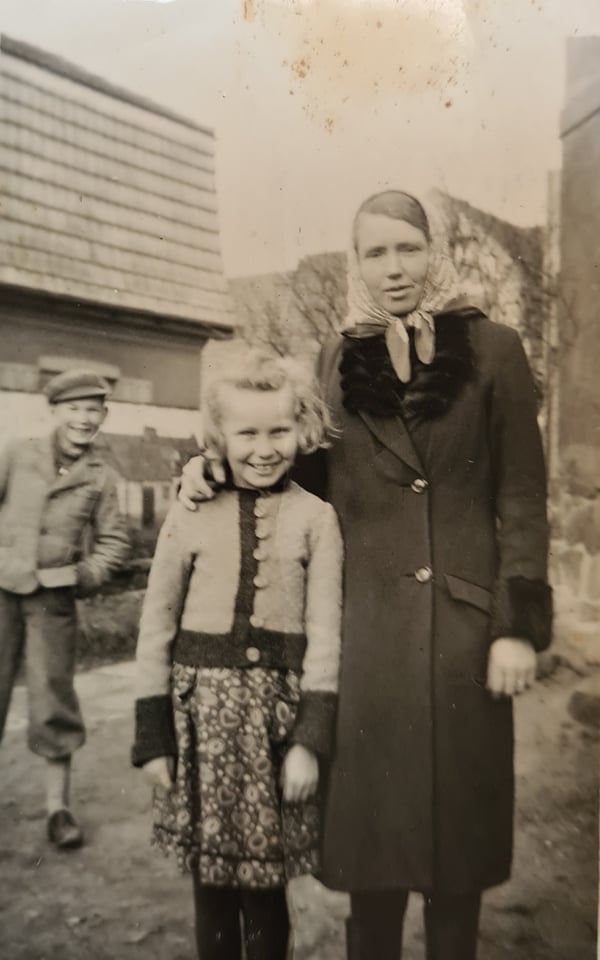 „Stalo se to, když nastoupil Hitler k moci. Děda se cítil původem Bavorák, Němec, a tak se přihlásil. Ale on zapomněl na jednu nejhorší podstatnou věc, a to, že jakmile se přihlásí, tak automaticky musí narukovat na vojnu, jako všichni Němci, jeho tři synové. První to odnesl můj otec, ten byl nejstarší, Josef Rettinger, potom narukoval postupně Karel, byl to můj milovaný strejda, toho jsem milovala, on mě taky. To mi bylo hrozně líto, také mě navštívil, když byl na té vojně. Přišel za mnou do internátu do školy v Třeboni, strejda Karel podle vyprávění mého otce odnesl celou ruskou frontu, tu krutou zimu atd. Hitler tam vpadl, ale že by je měl vystrojit řádně teplými věcmi, tak to jako neznal, tu ruskou zimu. A nejmladší to odnesl nejvíc, ten Matěj, Matyas se jmenoval, protože ten na frontě dostal šrapnel, trochu odlítnul na jeho nos a než přiběhla sanitářka, vytekly mu oči a byl slepý. Bohužel. Tak toto děda obstaral.“