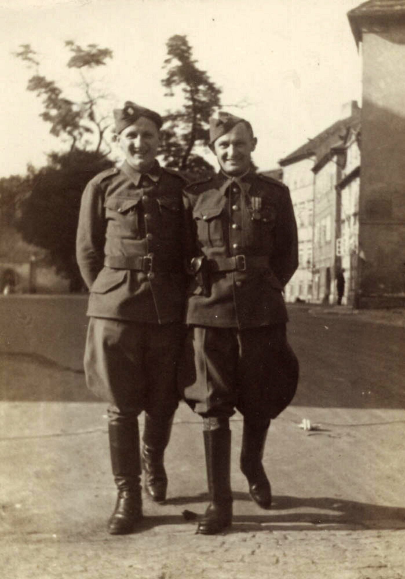 „Uniformy jsme si nechali, protože jsme neměli žádný civilní oděv. Dostali jsme sice šatenky, za které jsme si nakoupili v Praze civilní oděv, ale poslali jsme to v kufrech sem. Jenže cestou se to ztratilo, kufry přišly prázdné. Tak jsme neměli zase nic. Asi dva měsíce jsme chodili dál v uniformách, dokud jsme si někde nesehnali civilní oděv.“
