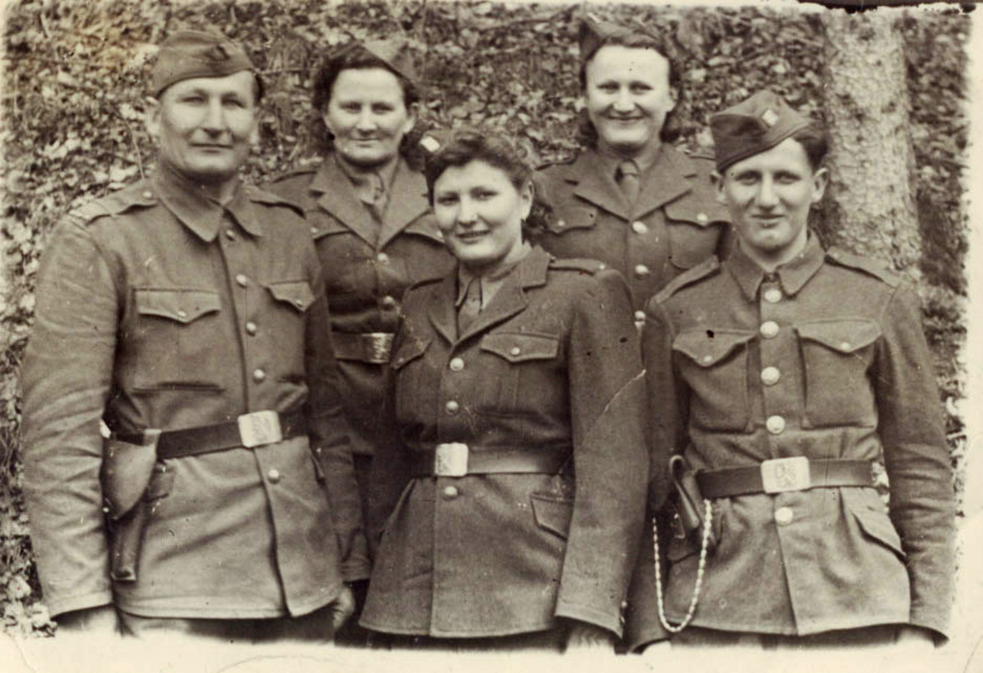 Rodina Kozákova za války v lese na polském území začátkem roku 1945 (zleva: otec František, matka Zdenka, nejstarší sestra Emilie, starší sestra Anastazie)
