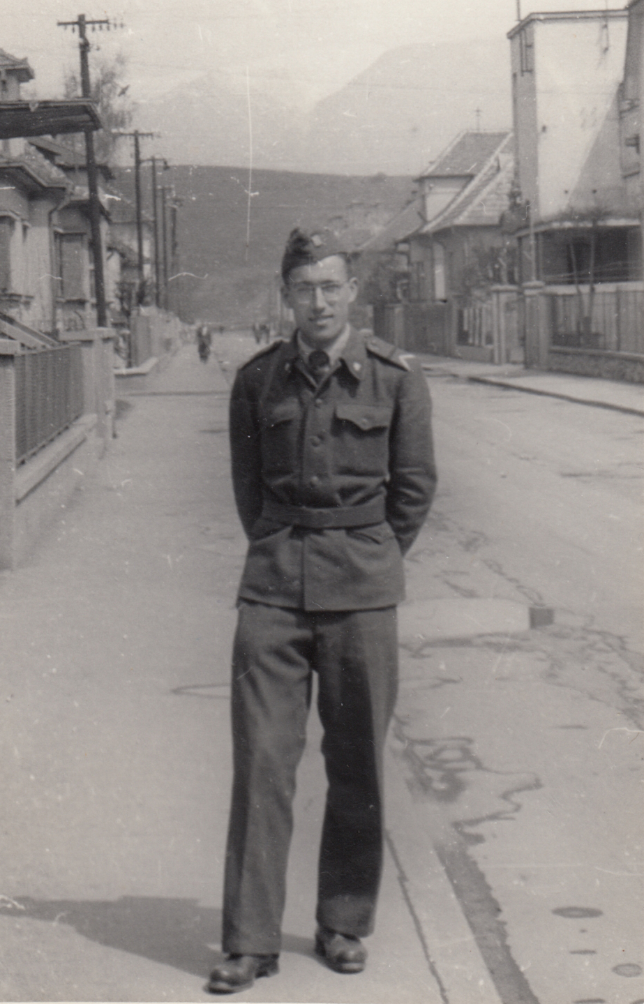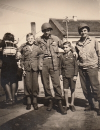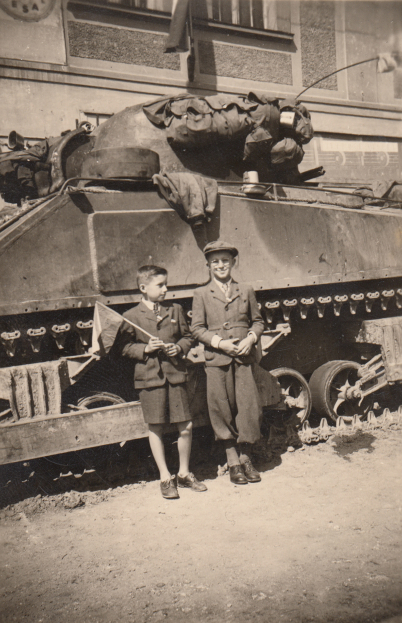„Přišel duben 1945, kdy letci, kteří byli pravděpodobně zaměření protileteckou obranou, se museli zbavit nákladu bomb a shodili je na Slovany do vilové čtvrti. Naši se strašně lekli. Naložili jsme mladšího bratra na kočárek a jeli podle řeky Úslavy a polními cestami do Starého Plzence, kde jsem měl tetu. Tam jsme byli až do osvobození americkou armádou.“