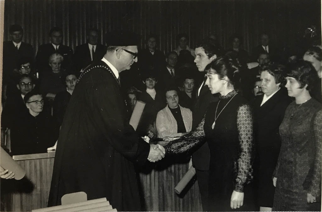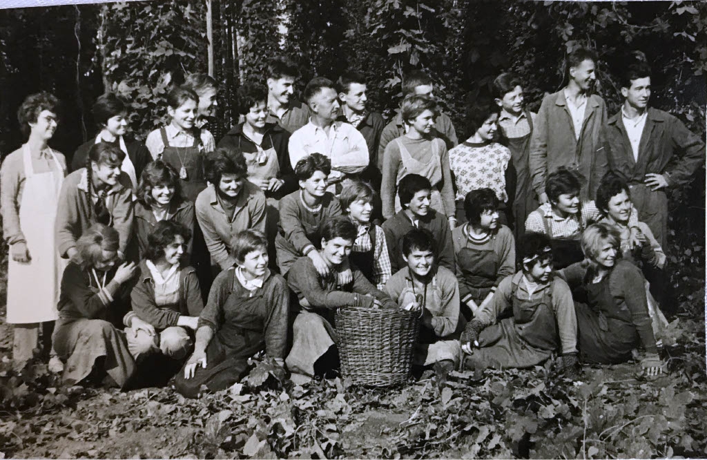 „Strašně ráda jsem jezdila na chmel. To jsme vždycky na konci srpna celý gympl, kromě snad maturitních ročníků, jsme jezdili na chmel na Rakovnicko. Tam jsme trhali, museli jsme si strhnout ten štok, doufám, že to říkám dobře. Museli jsme očesávat bobulky, měli jsme koš, a když byl plný, tak jsme šli k míře. Míra znamenalo, že tam byla paní, která měla kovový hrnec, tomu se říkalo míra. Tam se to nasypalo, a když to bylo hezky plný, tak nám dala jeden žeton. Za ten žeton, který jsme si střádali, jsme potom na konci chmelové brigády dostali peníze. Každý se snažil, aby za den udělal těch věrtelů co nejvíc, protože co věrtel, to žeton. Na konci se to spočítalo a někdo si třeba vydělal 600 korun, někdo 200. Podle toho, jak se kdo snažil. Nejhezčí pro nás byla ta legrace na chmelu, protože i když jsme seděli, česali, byli jsme vedle sebe, každý měl jednu řádku. Povídalo se, zpívalo, legrace byla. Na to ráda vzpomínám. Večer jsme mohli courat po vesnici, ale jen do určité doby, třeba v deset jsme museli být na ubikacích. Ubikaci si nepředstavujte jako hotel, to byla třeba sokolovna, tam byly naskládaný na sobě postele, na sobě kovový, tam jsme byly my holky. Kluci spali na seníku, normálně. Na seníku měli jenom matrace na seně a tam spali. Hlídal je pan profesor, nás hlídaly ženský, abychom nedělali nějaký blbiny.“
