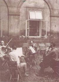 „Lužecké kvarteto bylo založeno 13. února 1964. V době, když jsem chodil na průmyslovku, docházel jsem po škole hrát do symfonického orchestru. V něm jsem hrál od jeho založení – nejprve se jmenovalo Slánské filharmonické sdružení a patřilo pod Závodní klub ČKD. Tam jsem chodil asi dvanáct let s přerušením vojny. Jsem vlastně zakládající člen, i když jsem byl nejmladší. Vydržel jsem tam pět let. Nahradil mě Láďa Snop. Byl to starší pán, znali jsme se z orchestru. Druhý houslista byl František Hofman, ale ten odešel ještě přede mnou. Potom se omluvil s tím, že má moc práce, i Ladislav Čepelák. Toho vyměnili za Tondu Lachmana. Když dostal V. V. Štech čestné občanství, kvarteto mu hrálo. Napřed při slavnostním ceremoniálu jsme hráli v sále na pódiu. Potom byla v předsálí uspořádaná recepce. Byl tam velký stůl, pan profesor seděl v čele, kvarteto bylo po jeho levici a hráli jsme mu do ouška. Starý pán dostal od Čepeláka velkou grafiku, Corvin udělal diplom s nápisem, také na něm bylo město Slaný, ale pořadatelé zapomněli Corvina pozvat.“