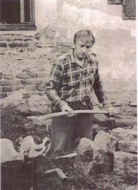 „Moje rodiště je statek v Bakově, na jehož sýpce jsou památkově chráněná, údajně renesanční sgrafita. Když jsem se v dospělosti jejich vznikem zabýval, ve všech knihách je napsáno, že se jedná o renesanční sgrafita z doby Rudolfa II. Nechtěl jsem tomu věřit, vyhledal jsem knihu Augusta Sedláčka Hrady, zámky a tvrze Království českého v knihovně Národního muzea. Tam je o statku v Bakově poměrně obsáhlá zmínka. V době, kdy sgrafita měla vzniknout, to byl bezvýznamný statek, podřízený pražskému klášteru. Takže jsem přesvědčený, že sgrafita vznikly až později, možná zásluhou hrabat Kinských. Doma mám hezké kresby sgrafit od slánského učitele Jungmana a fotografie pořízené slánským fotografem Kahlerem. Koupě usedlosti v Bakově byla neštěstím mých prarodičů. Statek koupili v době první pozemkové reformy a obrovsky se zadlužili. V rodině byly dvě děti, přiženil se k nim můj otec, pocházel z chalupy v Beřovicích. Když to trochu splatili, přišel Hitler a na hospodářství byla uvalena nucená správa. Němci nadělali dluhy, po válce to museli rodiče splácet. Jenom se trochu vzpamatovali, přišel ‚Vítězný únor‘, nejen že všechno sebrali, ale ještě jsem měl potíže.“