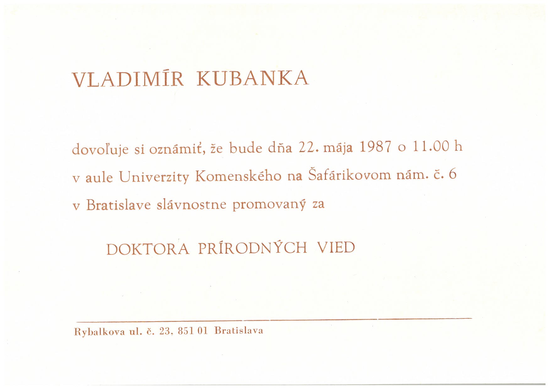 Vladimír Kubanka was born on October 30, 1958 in Šumperk. His mother, Alžbeta, née Hudecová, was born in 1924 in Komárno. Vladimír‘s father Ondrej was born in 1919 in Banská Štiavnica. At the time of Vladimir‘s birth, his family lived in Šumperk. Then they moved to Bratislava, where his father found a job in Slovnaft as a cultural officer for the trade union movement. He attended a nine-year elementary school in Krasňany, in Bratislava, from 1965. From this period, he also remembered how the female teachers beat him at school. He soon had to transfer due to the fact that, due to his father‘s disagreements with the management, the female teachers wanted to drop him. After that, he had no more problems with grades. His parents divorced in 1967. At that time, Brother Bohumil lived in a dormitory and also worked in Slovnaft. Vladimír finished elementary school in 1975. For further studies, he wanted to choose something related to nuclear physics or astrophysics. In the end, he decided on a new factory in Trnava. After school, he was briefly employed at a nuclear power plant and then went to study teaching, majoring in mathematics and physics. In practice, however, he worked mainly as an IT expert (programmer, analyst, technician). In his youth, Vladimír mainly met men, but he considered himself a bisexual person. Currently, pansexual people fall under the label. He already did education about his orientation in college. He also collaborated with experts on an enhancer for HIV diagnosis. During socialism, he had records in his medical report about his homosexuality, which was considered a mental illness until 1993. He became a member of the Ganymédes association, but stopped his activities with them when he moved with his mother to Banská Bystrica in the late 1990s. There he briefly joined the Social Democratic Party of Slovakia. Since 2011, he has regularly participated in the Bratislava and Košice Prides, but also in Vienna and Prague.