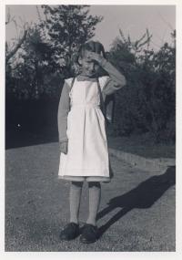 „To bylo opravdu mockrát těžký. Když viděla jsem fronty ve městě, tak jsem se tam postavila. Koukám, co tam prodávají, šunku. Tak se postavím do fronty a koupila jsem něco pro Alenu, moji švagrovou, nebo moji tchyni. Protože jsem neměla práci. Zase ti blbci komunisti mi nedali práci. Oni mi řekli na ambasádě: ‚Sie müssen sich zehn Jahren in Sozialismus bewähren. Gutes Leben in Sozialismus, nach bekomme ich tschechisches Pass.‘ [Musíte se za deset let v socialism osvědčit. Dobře žít v socialismu, a pak můžu dostat český pas.] Hezký, ne? Je mi to jedno. Ich habe Husak geschrieben. Ich war am Innenministerium und gesagt. [Psala jsem Husákovi. Byla jsem na ministerstvu vnitra a řekla jsem]: ‚Já chci pracovat.‘ Nach habe ich bei pumpa gearbeitet. Immer drei Monate, wie Brigade, wieder drei Monate [Potom jsem pracovala u pumpy. Tři měsíce jako brigádu, pak zase tři měsíce…]… ale bylo to veselý. Špinavá práce, ale já to miluju. Záchod geputzt, Luft gegeben Autos [Záchod jsem čistila, dávala vzduch autům], nerozuměla jsem ničemu z aut, pořád jsem se musela ptát těch automobilistů, kolik potřebujete, uklízela jsem, byla jsem tam úplný exot. Chodila jsem pro polévku pro lidi, kteří tam pracovali. Dva roky jsem dělala takovéhle věci a potom jsem řekla: ‚Dost. Jdeme domů. Dost, takhle to nejde.‘“