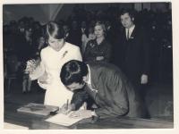 „Byla jsem tady čtrnáct dní v roce 1969 a potom ještě podruhé na jaře a všechny moje kamarádky řekly: ‚To není normální, co děláš.‘ Potom jsem se rychle seznámila s Jiřím. Jana, ta kamarádka, mi řekla: ‚Mám výborného kamaráda, ten zná nějakého Čecha, ten mluví italsky.‘ Tak výborně, mám šanci mluvit. Viděla jsem se s Jiřím, byli jsme spolu na Lužnici, sympatický byl pro mě ten muž tím, že byl v roce 1968 v srpnu v Itálii a přišel zpátky. Řekl: ‚Ne, tady jsem doma. Nejsem emigrant.‘ To bylo pro mě moc sympatické. Byli jsme na Lužnici, byla jsem na československé ambasádě v Bernu a řekla jsem: ‚Já chci tady zůstat.‘ Oni mi řekli: ‚Ne, není to možné. Vy potřebujete práci.‘ Protože potom jsem měla práci u nějaké architektonické kanceláře, firmy z NDR na Václavském náměstí, myslela jsem si, že je to výborné, že ještě nemluvím česky, tak začnu tam. Ambasáda nic. Nic, že to nejde. Zase jsem přijela sem, byla jsem tu každý rok třikrát.“