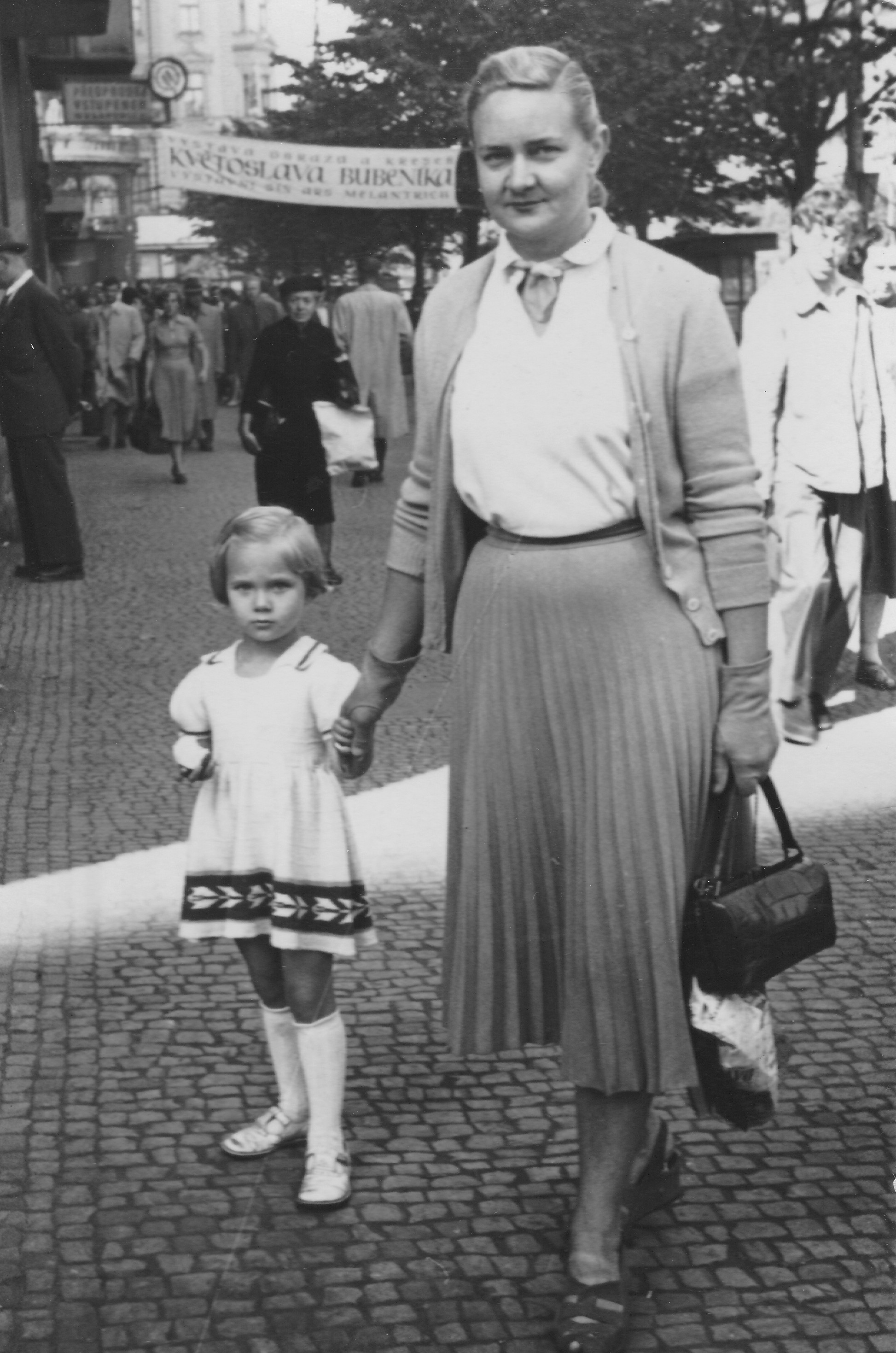 „Jednak jsem se dozvěděla, že hned to pondělí mají výtvarníci sraz před Mánesem, a potom jsme tam šli nějakým průvodem, kde – šli jsme pod lešením, všude [byla] lešení – se náhle zhaslo. Jak tam byly lampy, ty náhle zhasly. A všechny nás napadlo, že to je úmysl a že podobně, jako to bylo na Národní třídě [17. listopadu] – to bylo už pondělí [20. listopadu] –, nás tam nějak sevřou a zmačkají nebo co. [Vryl se mi] ten pocit strachu, že jsme v pasti. Nakonec to skutečně nebylo, [jak jsme se obávali]. Tak jsem si uvědomila, jak se člověk bojí. A potom další [věc] byla, že se tam podepisovaly různé petice, prohlášení a tak dále, tak jsem se taky podepsala. Pak jsem z toho nadšeného davu šla z Václaváku domů a tam už to utichalo, tam už [byly] prázdné ulice s lešeními, se zataženými roletami, jak to člověk znal. Přišla jsem do domu, vzala jsem si papír a na nástěnku jsem napsala: ‚Přestaňme se už bát!‘ A za mnou se objevil chlapík, který – jak se ukázalo – byl takový ten tajný, který žil v konspiračním bytě. Stál za mnou a pak říká: ‚Jo, a vy myslíte, že to dobře dopadne?‘ Já jsem řekla: ‚Já prostě chci, abychom už se přestali bát.‘ A on řekl: ‚No ještě uvidíte.‘ Tak jsem přišla domů a říkala jsem si: ‚Možná že to opravdu nedopadne.‘ Zavolala jsem kamarádce a s nadšením jsem jí říkala, že začnu chodit na demonstrace, že se to musí změnit, že jsem tam podepsala nějaké prohlášení, a ona mi řekla: ‚Aleno, víš, co jsi to udělala? Víš, že nebudou moci tvoje děti už studovat a že to je utrum?‘ Takže [představa], že by si lidi [tehdy] mysleli, že už je vyhráno, to skutečně tak nebylo. Já jsem položila sluchátko a teď jsem si řekla: ‚Proboha, co jsem to udělala? Tak já znemožním svým dětem, aby studovaly!‘“