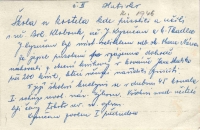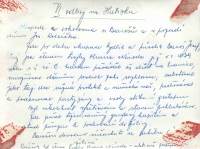 „Tatínek když slyšel, že se v Karlovicích na Soláni střílí, tak vzal krávu a jel napřed. A když dojel k odbočce na Zákopčí, tak tu krávu někomu strčil a ať doveze věci ke známým, u kterých jsme měli spát. Vracel se rychle domů. Zjistil, že jsme ještě doma, tak udělal křik. My jsme se zdrželi, protože bratr měl jedny boty a maminka je dala na ten vůz. Tak jsme ho pak nesli na zádech do toho kopce a došli jsme do domu, kde jsme pak zůstali. Za kopec už jsme tedy nedošli, protože už se střílelo. Byli jsme tam schovaní ve sklepě, my všichni z okolí a i ti domácí. Najednou někdo mlátil na dveře od sklepa a byli to Rusi.“
