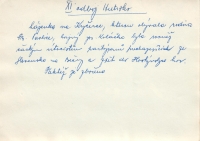 „Když začátkem války utíkali naši lidé do ciziny, tak se domluvili a převáděli letce do Polska a ti odtamtud utíkali do Anglie. Takže jsem si tam tak bloudila. Na mě moc času nikdo neměl. Já jsem se bavila sama, hodně jsem četla, hrála jsem si s dětmi. Bála jsem se parního válce, to jsem se vždycky schovala. A když jsem tam tak bloudila po té chalupě a byla sama, zjistila jsem, že se pořád něco dělalo na hůře, na půdě. No tak jsem byla zvědavá co. Říkali mi: ‚Nestarej se, to není tvoje věc‘. Když to tam dodělali, tak jsem tam samozřejmě šla. A tam za starými skříněmi byla taková škvírka. Tam se dalo vejít, byla tam místnůstka, postele, peřiny. Bála jsem se zeptat, protože jsem tam prakticky neměla vůbec jít a šla jsem tam tajně. Takže předpokládám, že tam přespával, kdo potřeboval. Na to nepřišla nikdy řeč, ale ty postele tam byly a peřiny byly použité. Tedy tam asi přespával někdo, kdo se potřeboval ukrýt.“