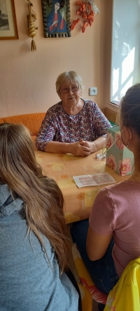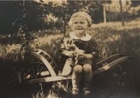 „Páni učitelé dva nám museli ukazovat obrázky. Na jednom bylo pánský kolo, úplně stejný, jako měl můj tatínek, a říkal mu plečka, to si pamatuju. Potom nám ukazovali aktovku, normální hnědou, koženou aktovku – ani ne velkou – a museli jsme všichni říkat, jestli jsme ji doma viděli. A ti učitelé byli zády. My jsme seděli v lavicích, učitelé byli zády k tomu rozkročenýmu esesákovi na stupínku a opatrně dělali pusou: ‚Ne, ne,‘ abychom to neřekli, protože by bejvali šli a vystříleli celou rodinu. To bylo hrozný napětí.“