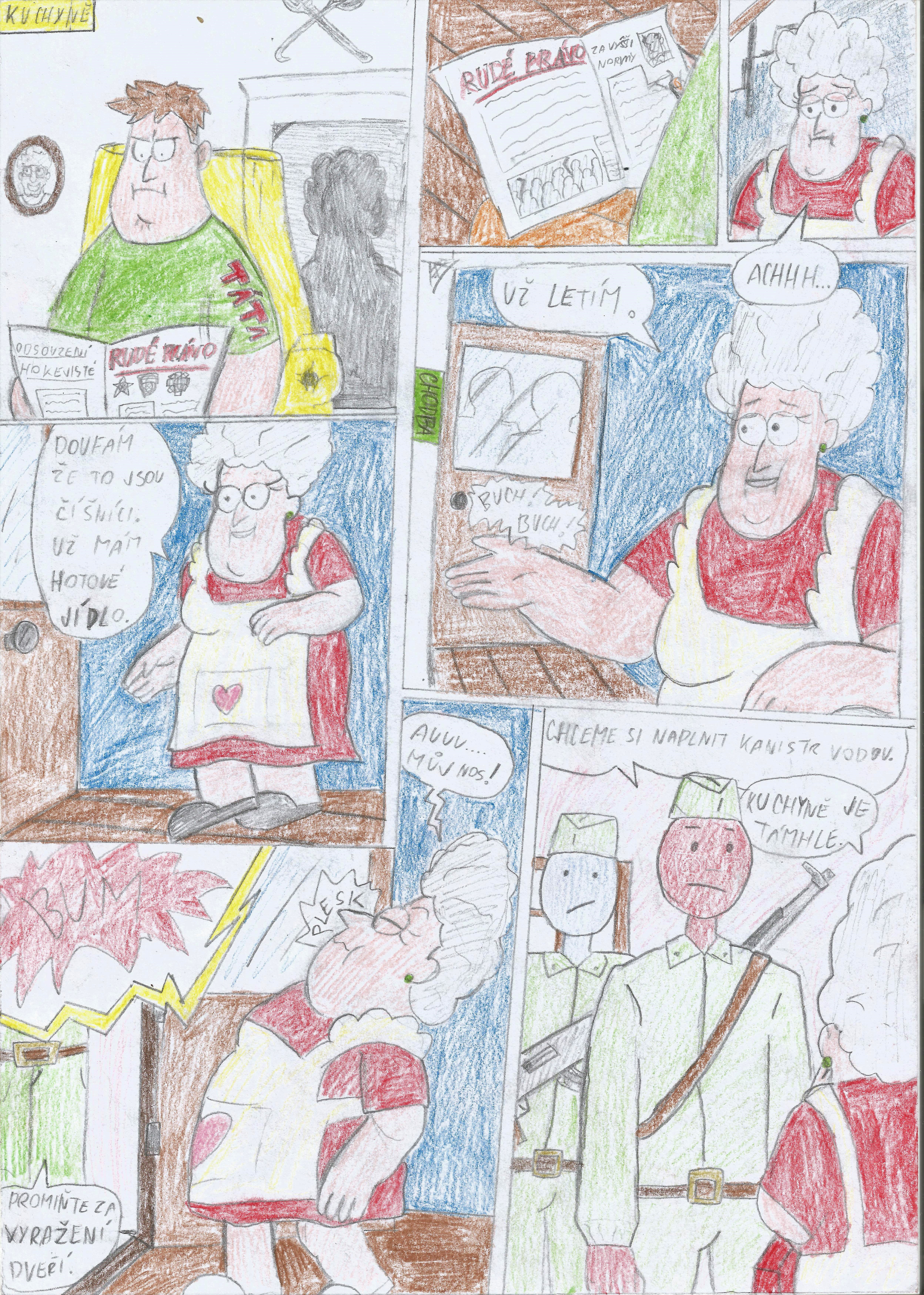 "Můj tatínek byl učitel, byl to kromě jiného velký obdivovatel Dubčeka. A v roce 1968, v době pražského jara vstoupil do Komunistické strany Československa, vlastně pod vlivem událostí pražského jara, kdy ta strana se nějakým způsobem obrozovala, kdy vůbec se tady razilo heslo 'socialismus s lidskou tváří' a podobné věci. A můj otec v té době byl velice mladý, jemu bylo 22 let a byl to ruštinář, učil ruštinu, takže on rusky mluvil velice dobře. A moje babička, tatínkova maminka, dělala kuchařku tenkrát na státním statku Skalka pod zříceninou hradu a zámku Skalka. U toho areálu zastavili nějak na začátku září ruští vojáci, tenkrát to byli opravdu Rusové, nebyla to žádná jiná národnost. Zastavili tam a přišli do té kuchyně a chtěli po babičce, aby jim dala vodu do kanystrů. No a můj tatínek, který byl hluboce zklamán tím, co se stalo, vlastně jak násilným způsobem byl ukončen ten obrodný proces naší společnosti v roce 1968, se jal diskutovat s těmi ruskými vojáky. Jestli vůbec tuší, co udělali, jak vlastně tu naši zemi poškozují, jak se vměšují do našich záležitostí a tak. No a ten ruský voják, kterému se to evidentně hodně nelíbilo, prostě vzal samopal a namířil ho na toho mého tatínka. Babička před něj tenkrát skočila a začali ho uklidňovat, protože v té době měl rodinu, já jsem byla mimino a on se s nimi chtěl pustit do nějaké diskuze o tom, že to, co dělají, není až tak úplně čisté a férové."