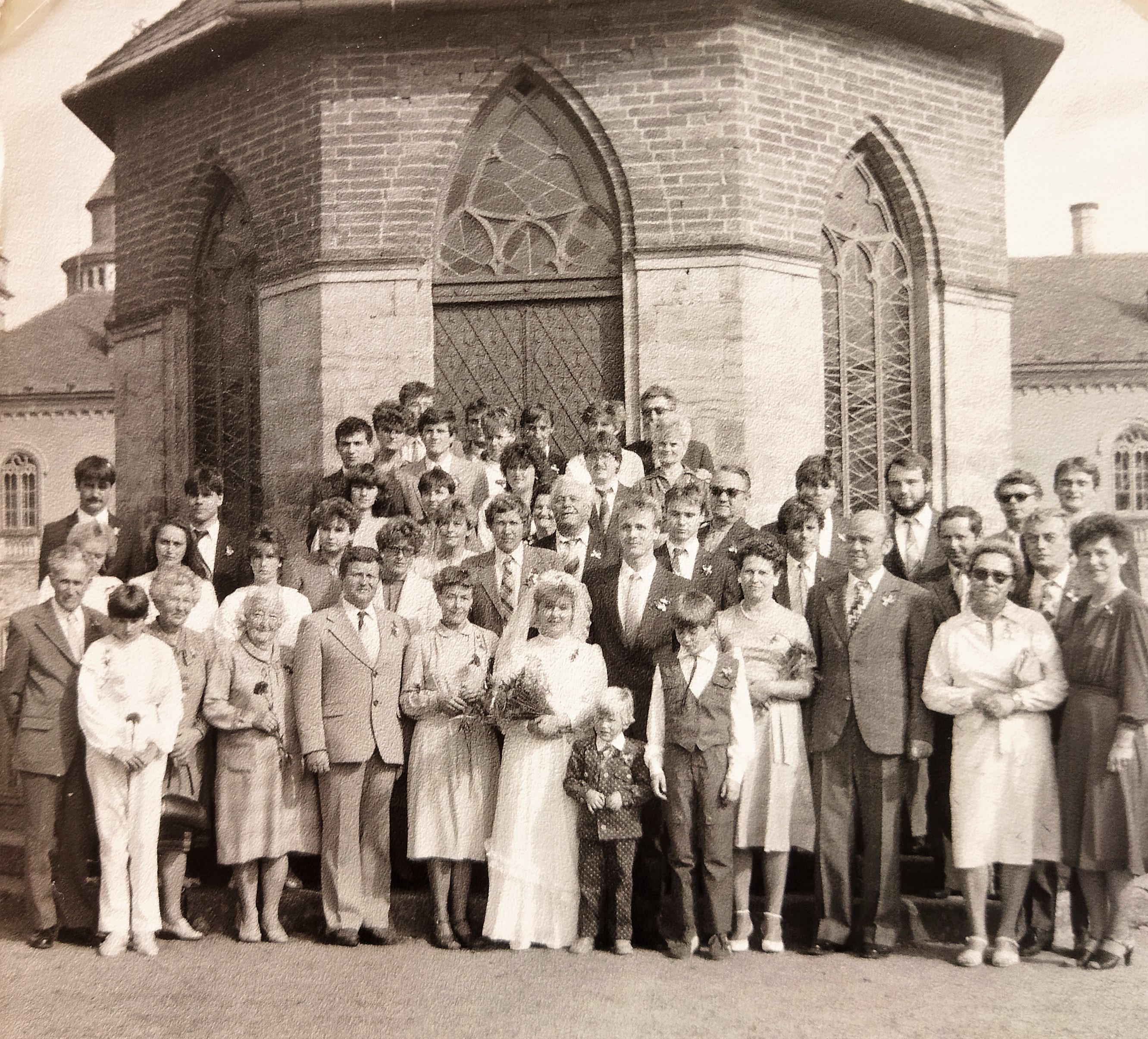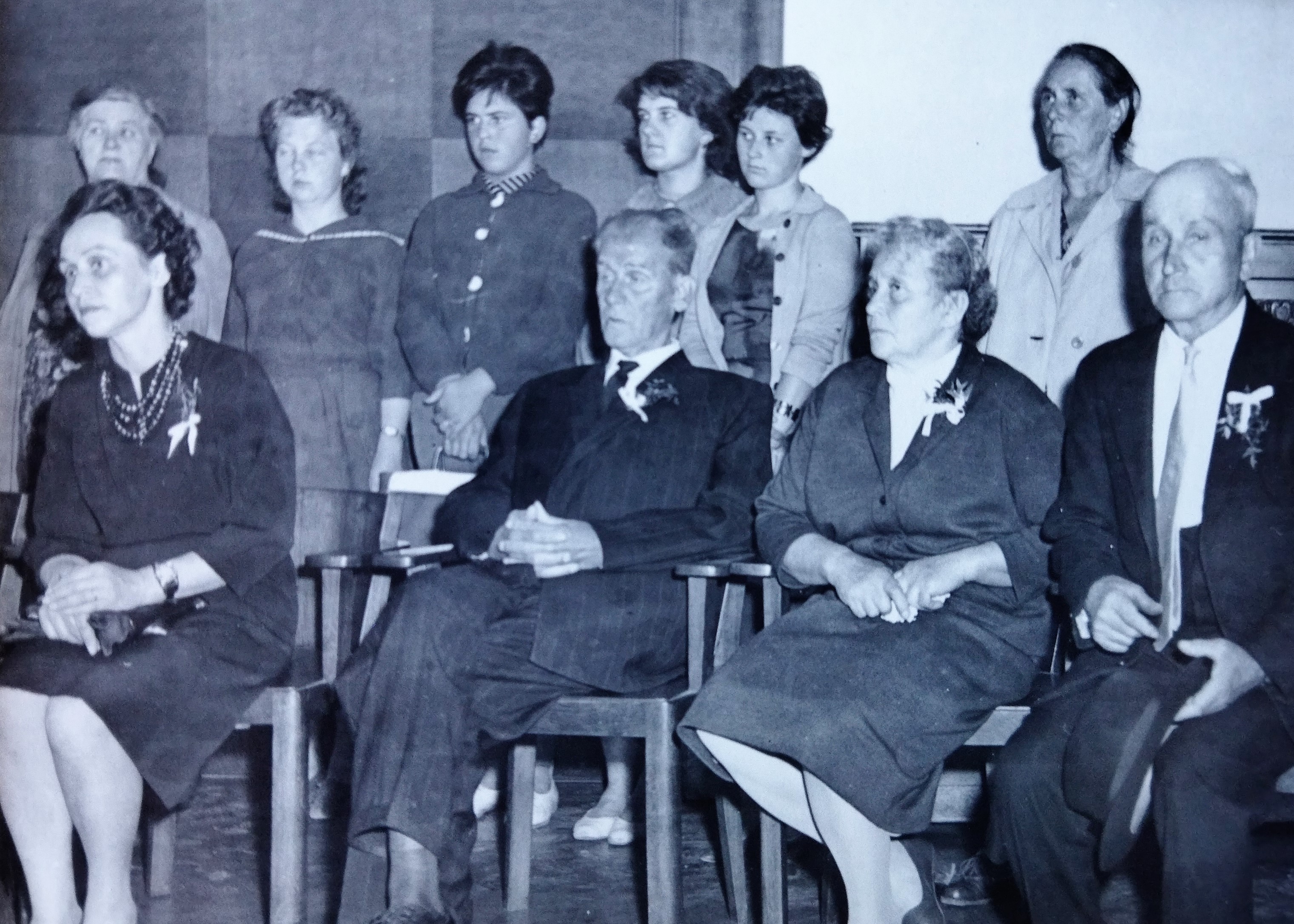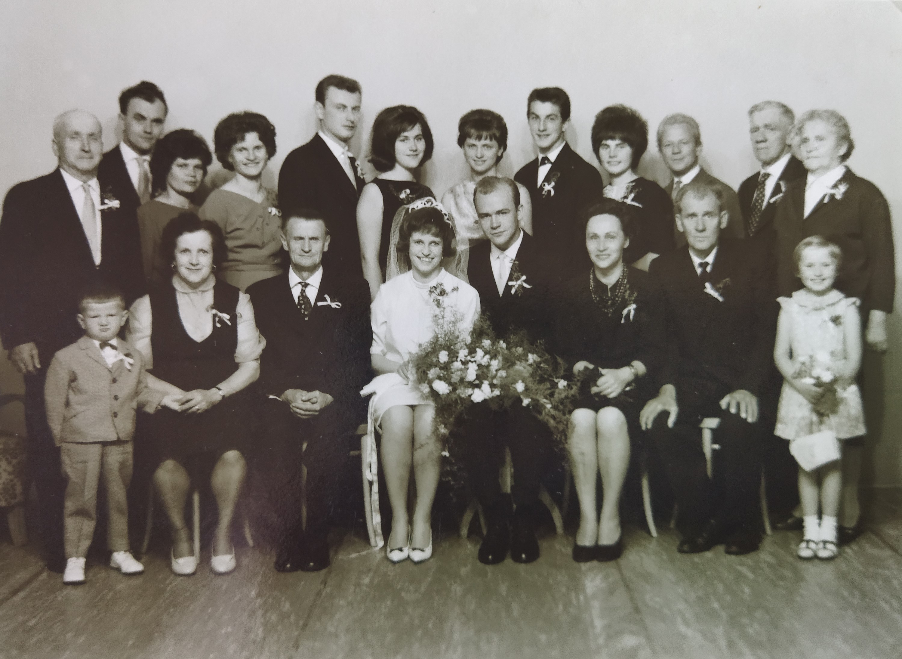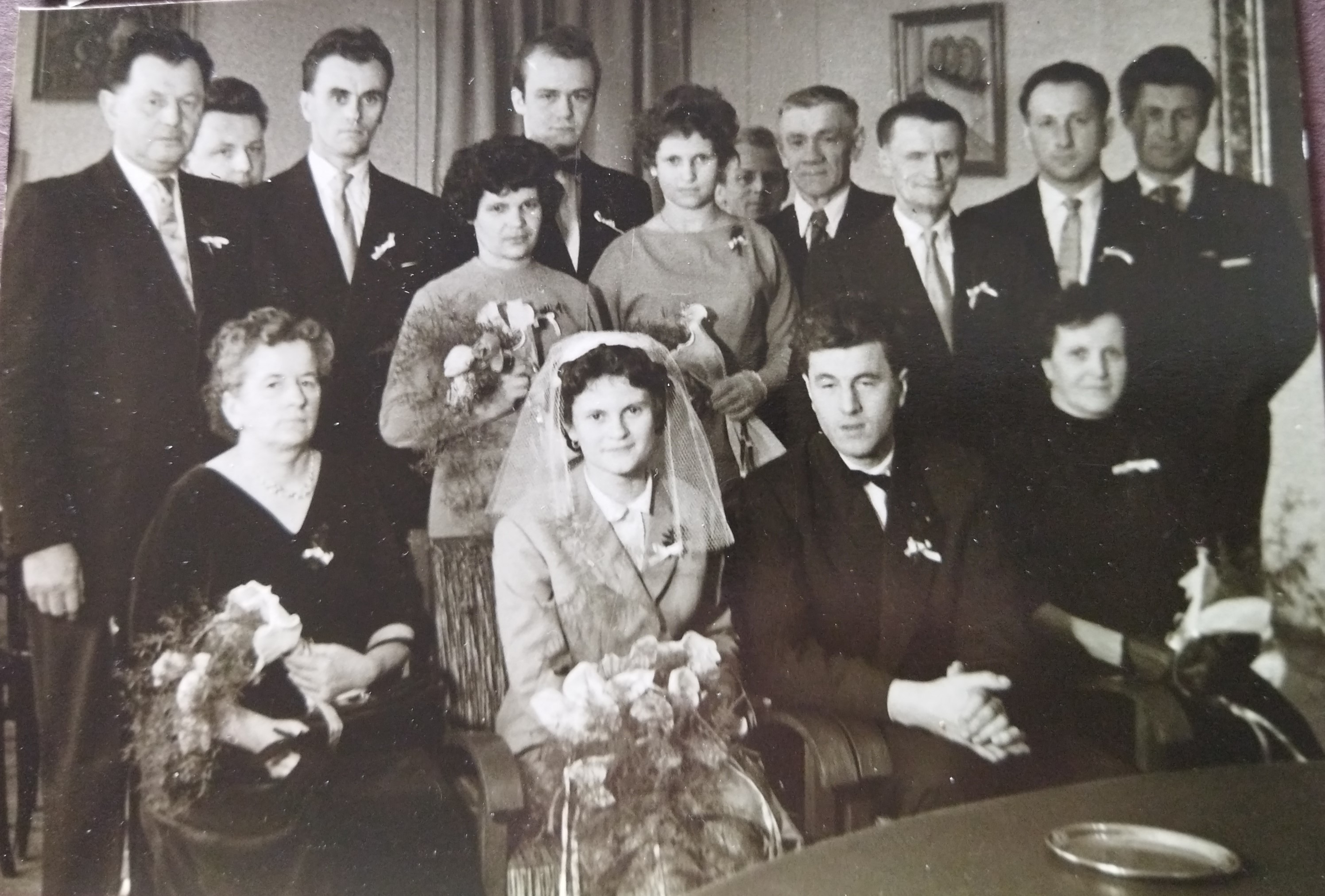 Foto ze svatby Jindřicha Marka na radnici v Jablonci nad Nisou, 11. července 1961. První zleva dole matka pamětníka Jaroslava Marková, vedle ní otec Josef Marek
